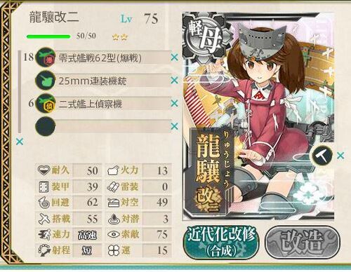 龍驤がLv75に到達しました。