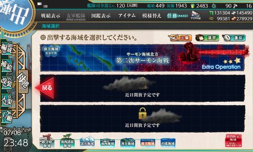 週末に後段作戦が始まるそうです。 イベント海域はしばらくお休みして5-5へ出撃します。 1回目、Kマスで大破撤退。 2回目、同航戦で「レ級無し」編成にS勝。 3回目、丁字有利で「レ級無し」編成にS勝。 4回目、同航戦で「レ級2隻」編成にD敗。 …