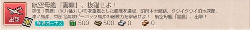航空母艦「雲鷹」、抜錨せよ! 編成例(試製甲板カタパルト入手可) | ぜかましねっと艦これ! 1)2-5 2)7-2-2 ボスを仕留めきれませんでしたがこの任務はA勝でOK。 任務進捗50%を確認。 3)7-4 Eの空襲マスで八幡丸が初中破! 潜水艦と水…