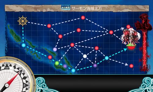 下ルートで攻略。 道中、決戦支援無し。 1回目、Gマスで大破撤退。 2回目、ボスに到達。 3回目、S勝で弥生。 道中戦で大和が中破したため、タッチ不能。 ボス戦は単縦陣にしました。 4回目、Mマスで大破撤退。 5回目、反航戦でA勝。 駆逐2→航巡2…