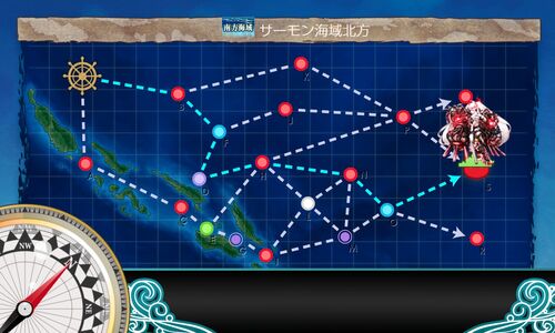 E4第二ゲージを攻略します 道中対潜支援、決戦支援を投入 スタート→A:能動分岐→D:潜水→H:空襲→P:空襲→R:戦闘無し→S:夜戦→V:ボス、と進行 2回目、同航戦でS勝 3回目、丁字不利でA勝 4回目、Dマスで大破撤退 5回目、同航戦でS勝 6回…