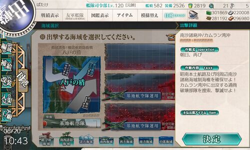熊野を旗艦に据えて夜戦装備を試します 1回目、同航戦でD敗 2回目、同航戦でC敗 3回目、反航戦でA勝、扶桑 熊野が夜戦で活躍 4回目、同航戦でD敗 ここまで「決戦支援無し」でボス戦「警戒陣」を試しましたが、勝率が悪過ぎます 4回の出撃でバケツ2…