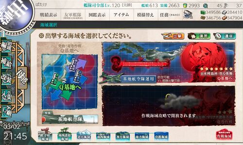 E1第二ゲージ攻略です 24早春『発動!竜巻作戦』E1甲 攻略記録 - ドラム缶輸送日記 【艦これ】 (hatenablog.jp) を参考に編成させていただきました 第三スタート→V:戦闘無し→W:空襲→R2:水上→S:潜水→T:水上→X:ボス、と進行 空襲マスは輪形陣、…