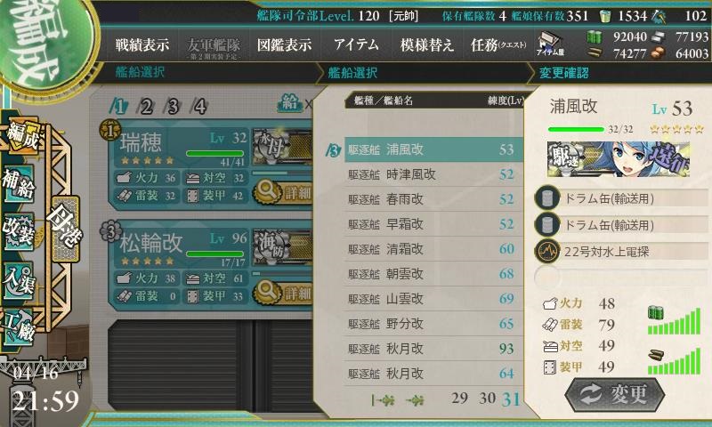 次回メンテで実装なら、浦風のLv上げを優先した方が良さそう。