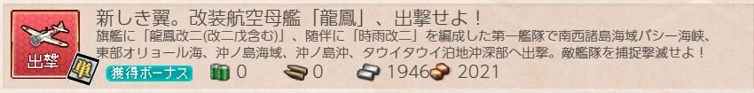 「龍鳳改二戊、時雨改二、軽巡、駆逐3」で出撃。