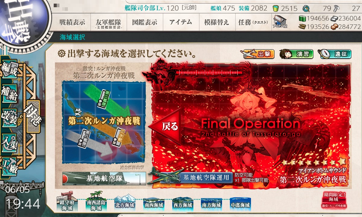 2)Uマス:A勝以上×2回 基地防空:航空優勢×2回