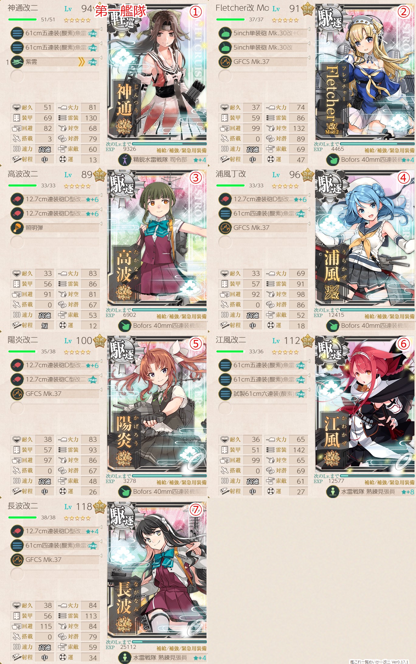 決戦支援は「砲撃型」で火力170を目安に全艦キラキラで送り出しました。