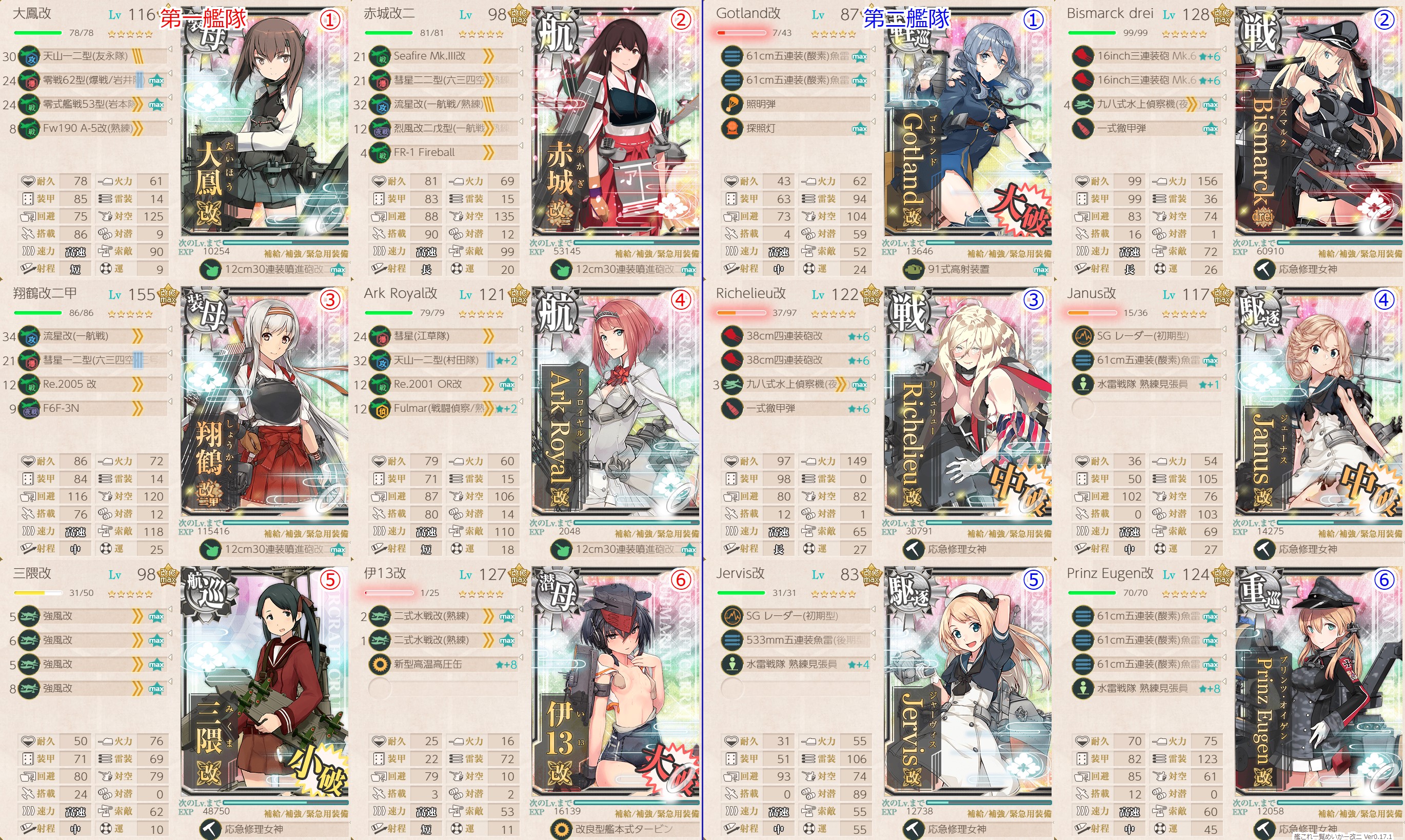 空母艦載機も熟練度の禿げた機を差し替え戦闘機を積み増し。