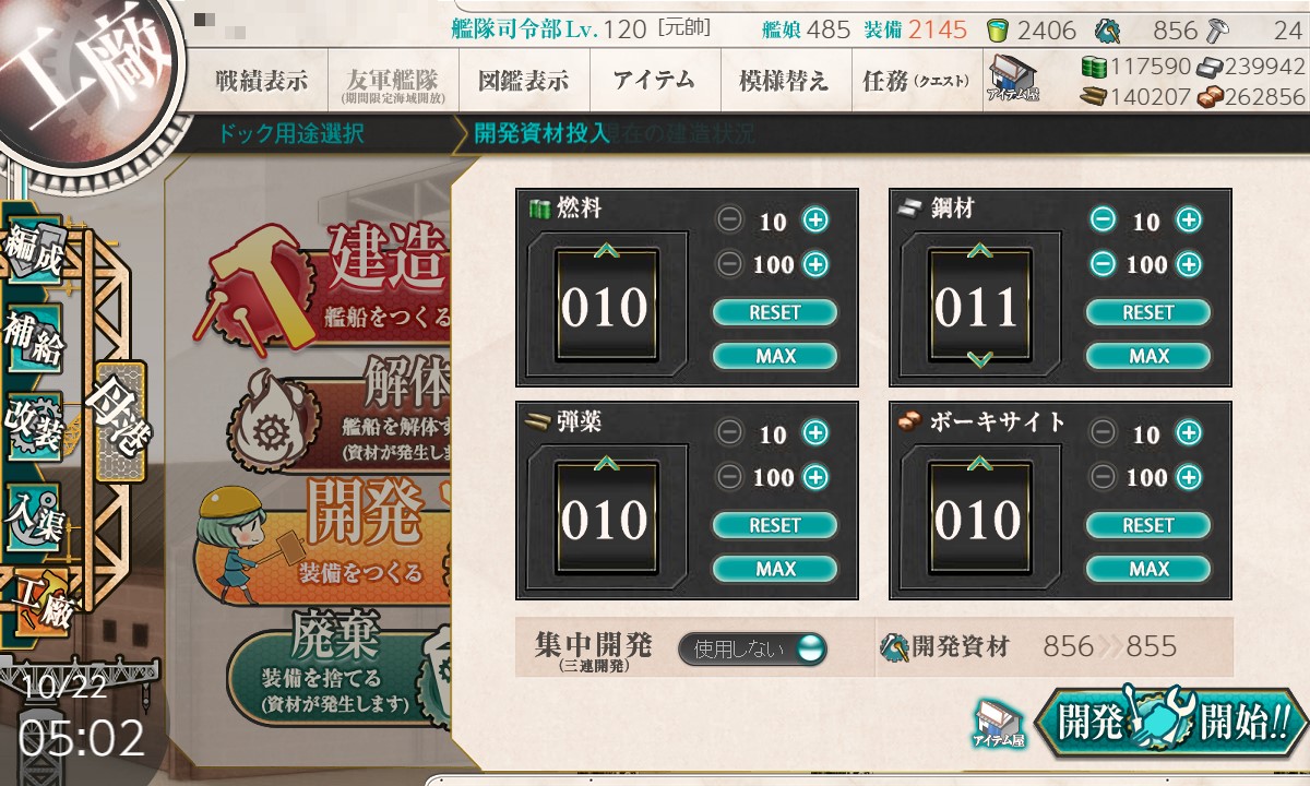 2021-10-22 開発 艦これ やっと12.7mm単装機銃が3個揃いました。 これでいつでも大発→大発動艇(八九式中戦車&陸戦隊)に改修更新できます。 デイリー改修で大発に★を1日1個づつ増やして下準備中。。。