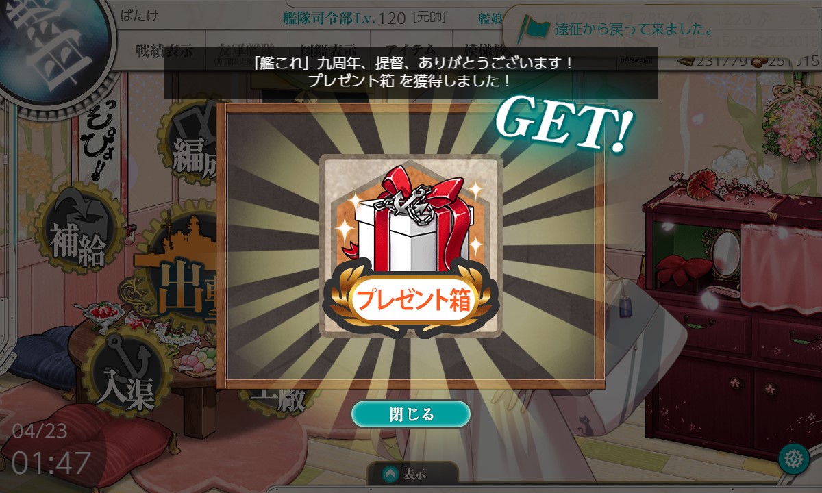 本日未明「艦これ」九周年を記念して、サーバを止めない形で、プチアップデートを実施しました!