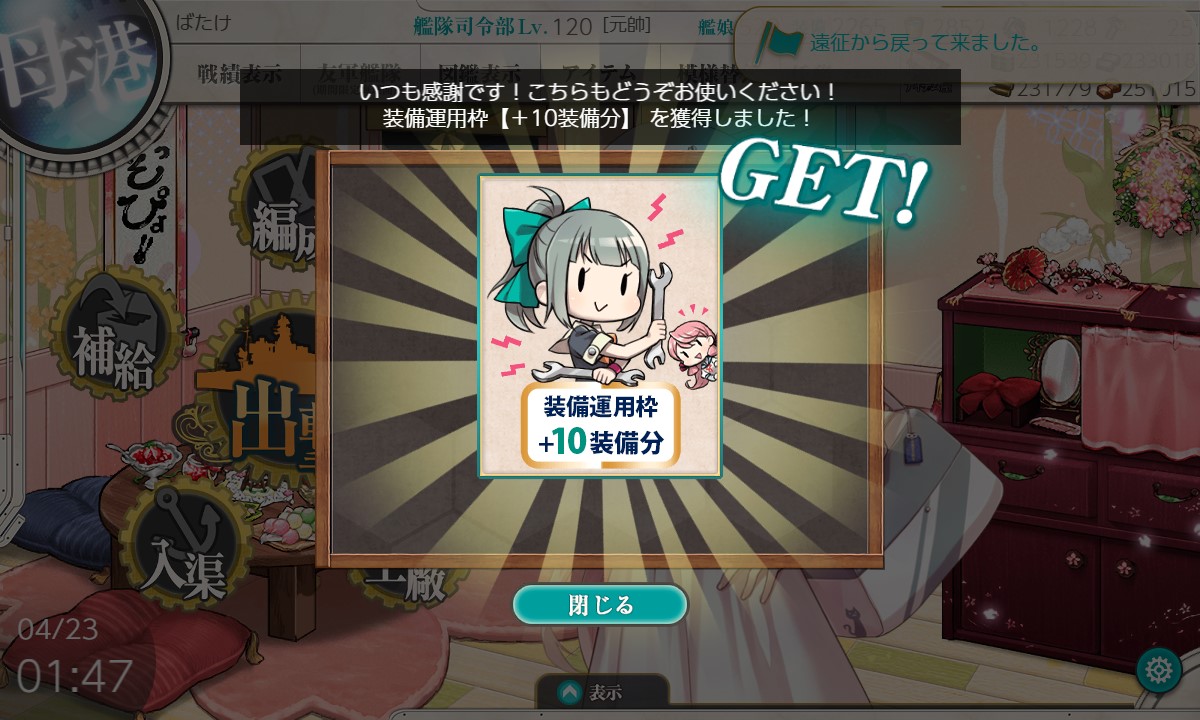 プレ箱と装備枠、有難く戴きました。