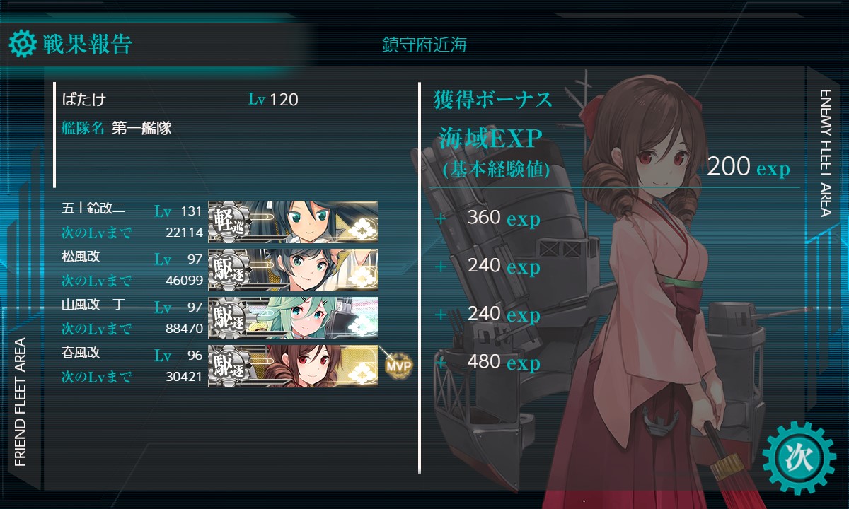 1-1~1-5まで、全ての戦闘で完S勝でした。