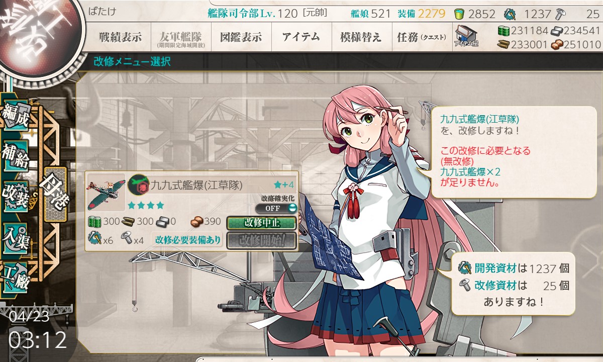 『九九式艦爆(江草隊)』→『 彗星(江草隊)』の改修、サボりすぎてまだ★4でした。