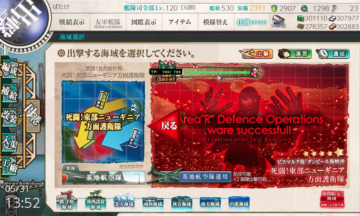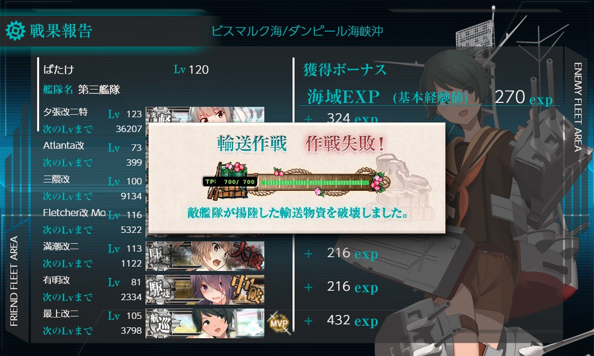 5回目、丁字有利でA勝。TP69/残464。ドロップ無し。