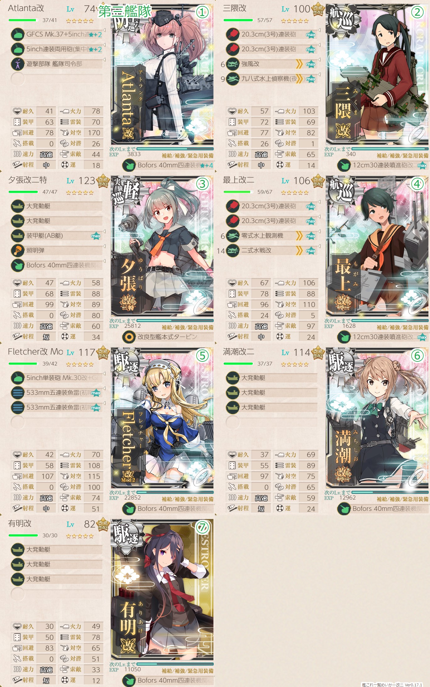 8回目のところに掲載した編成と装備がベストでした。