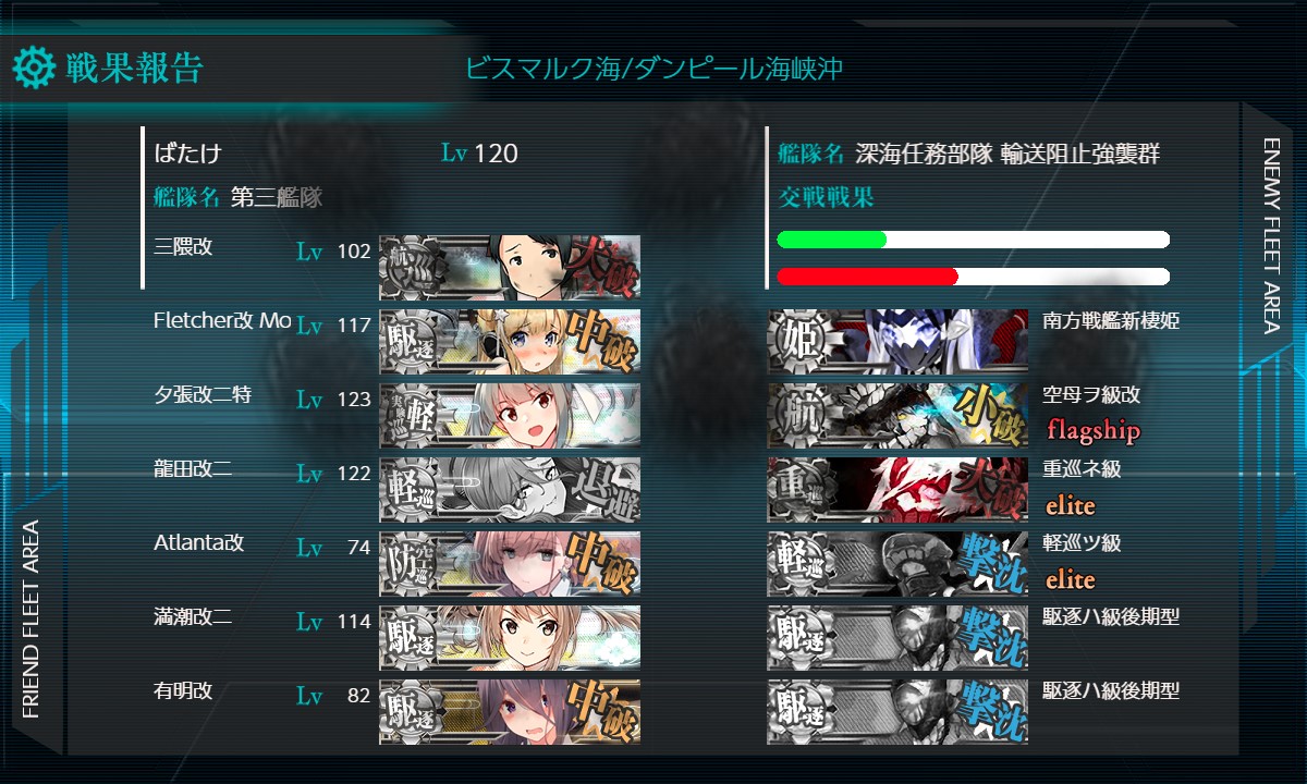 3回目、同航戦でS勝。TP81/残602。電。