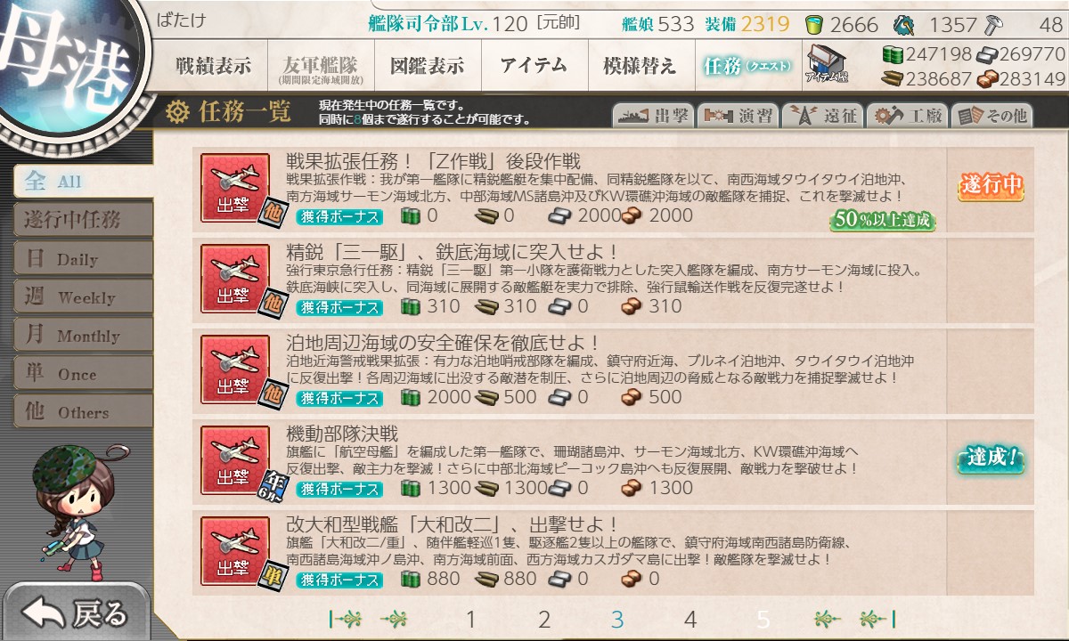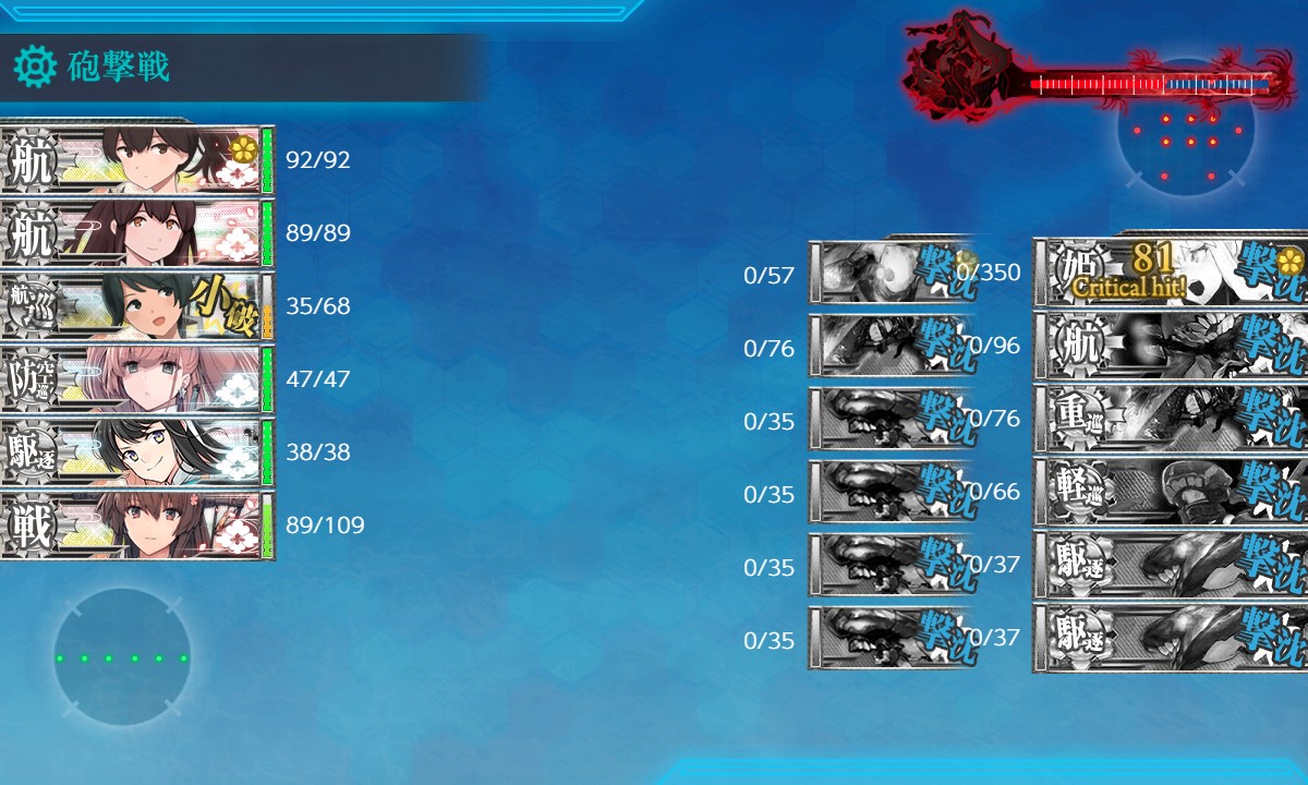 1回目、空母を旗艦にするの忘れたため任務進捗せず(ガバ提督)