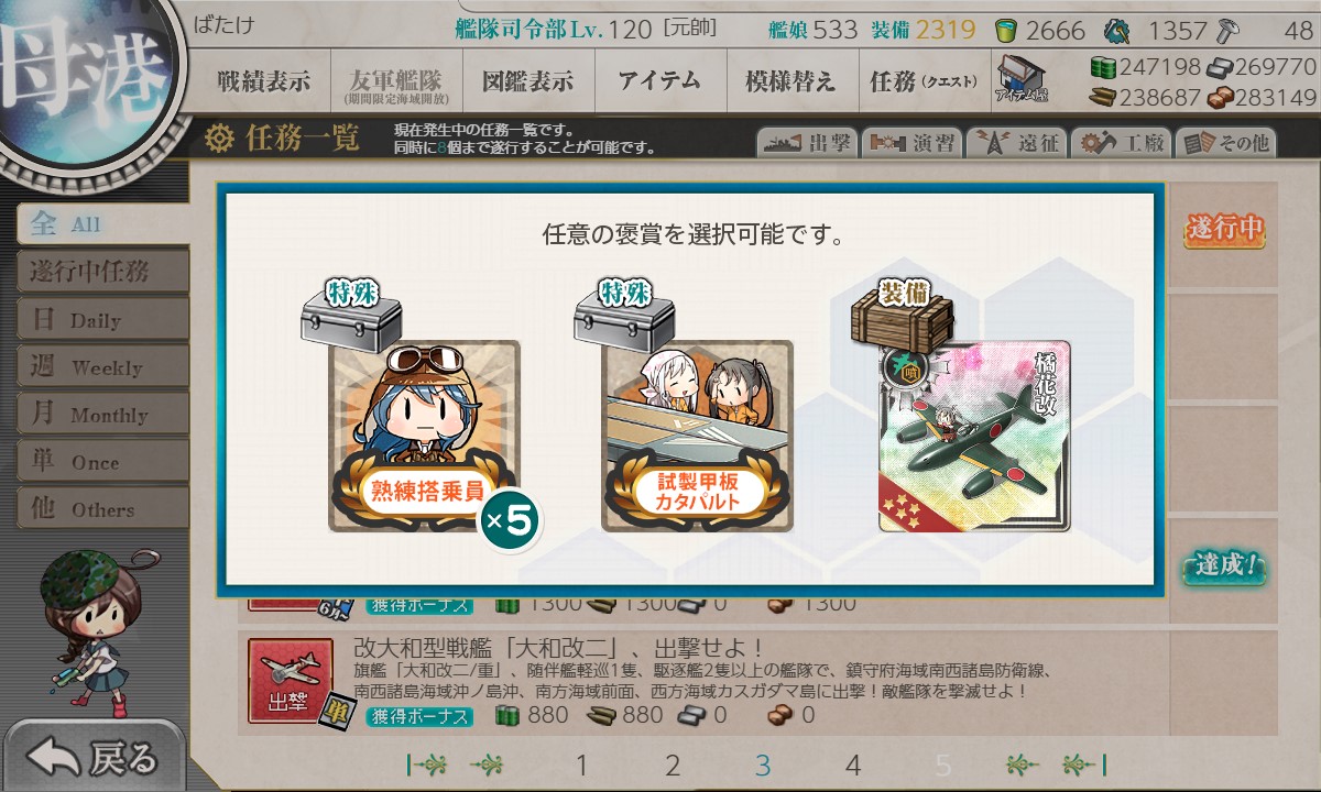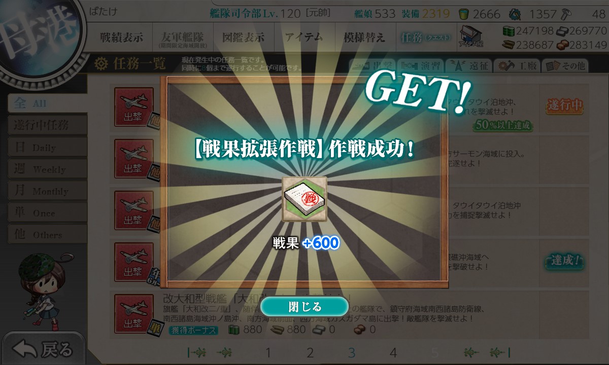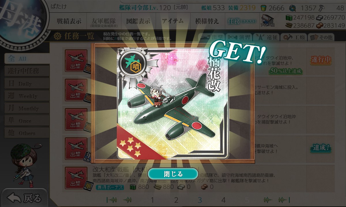 出撃4回目でようやく5-2ボスS勝2回を達成。
