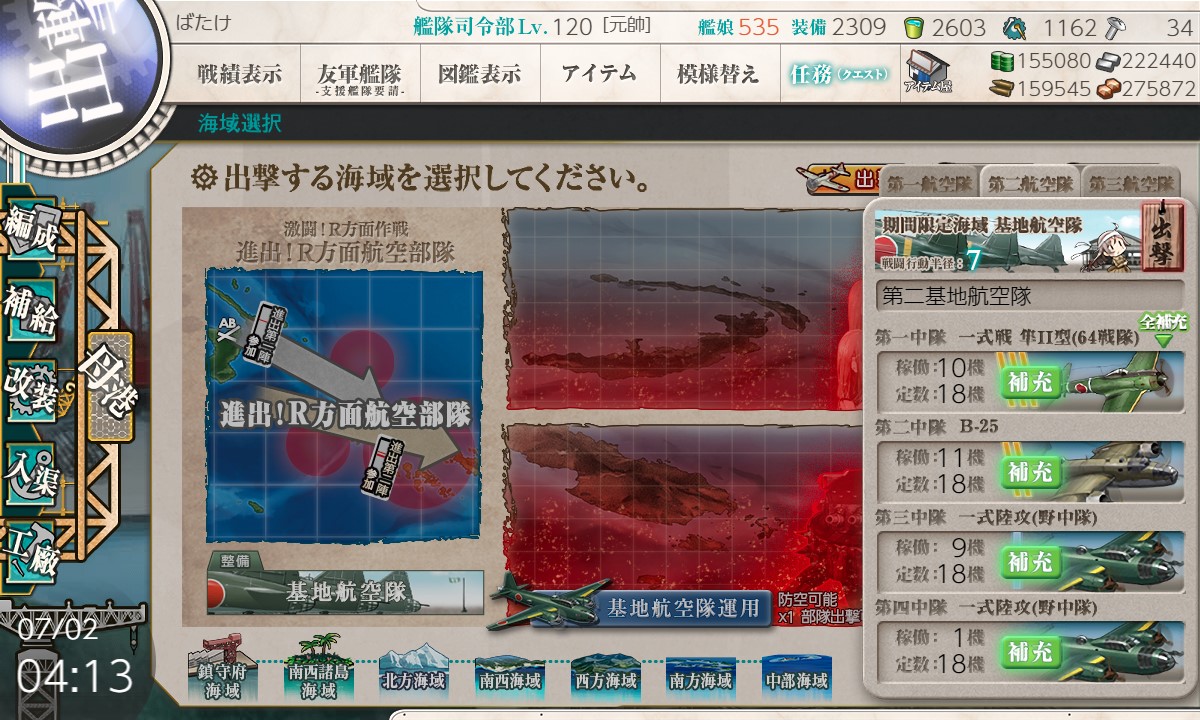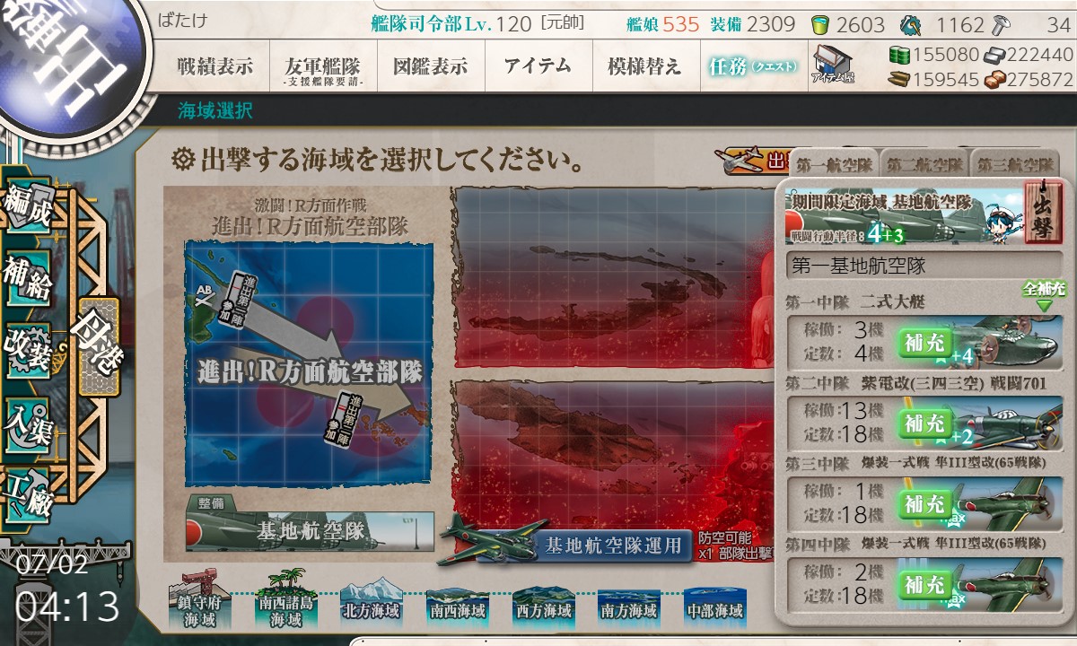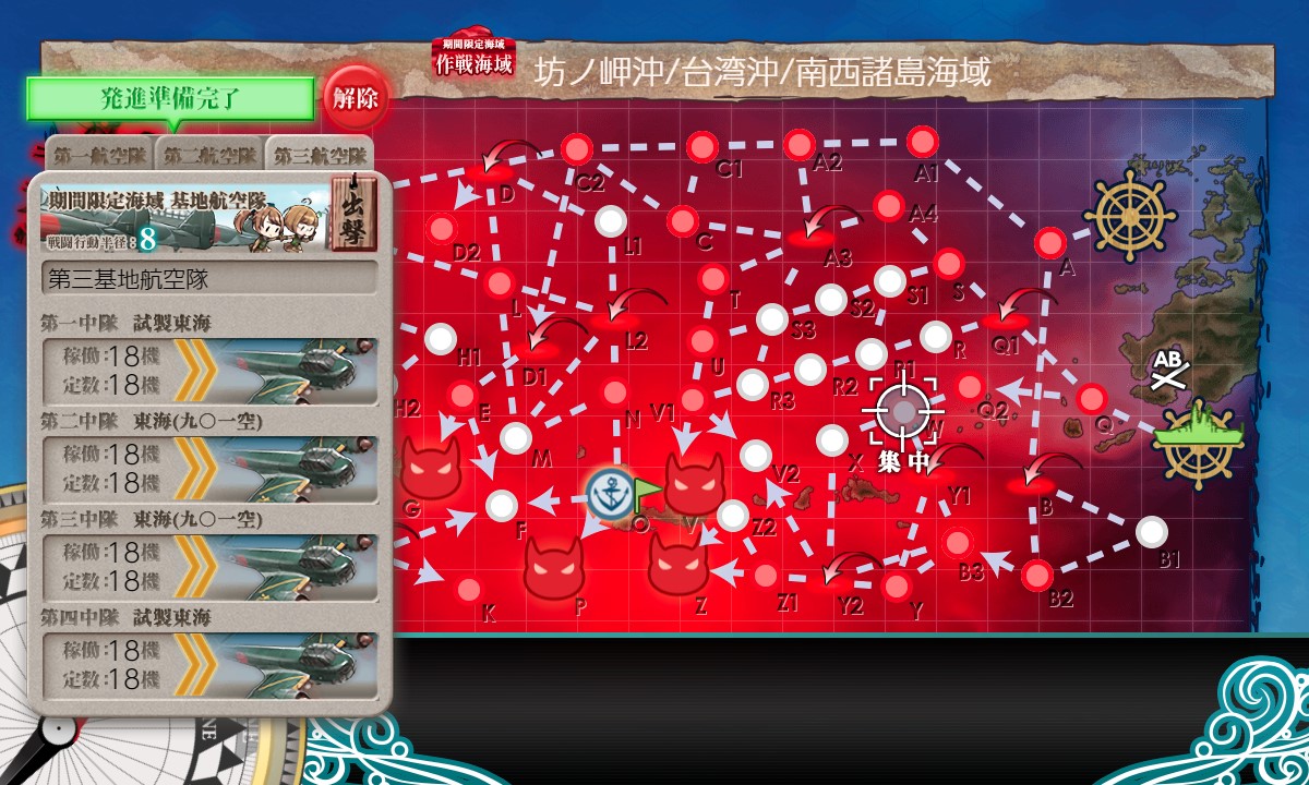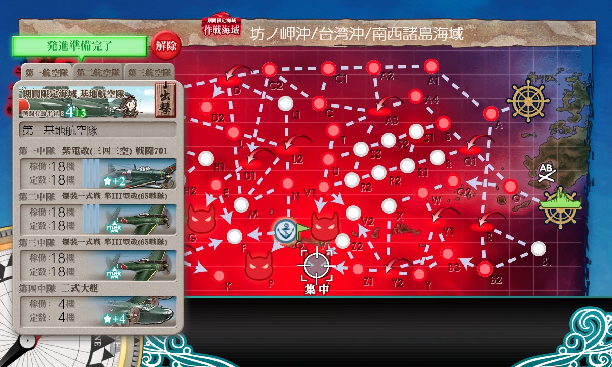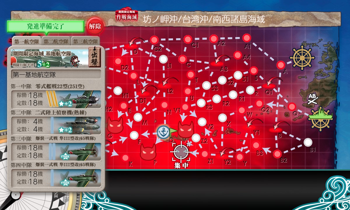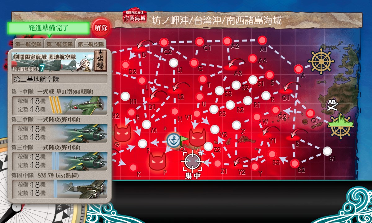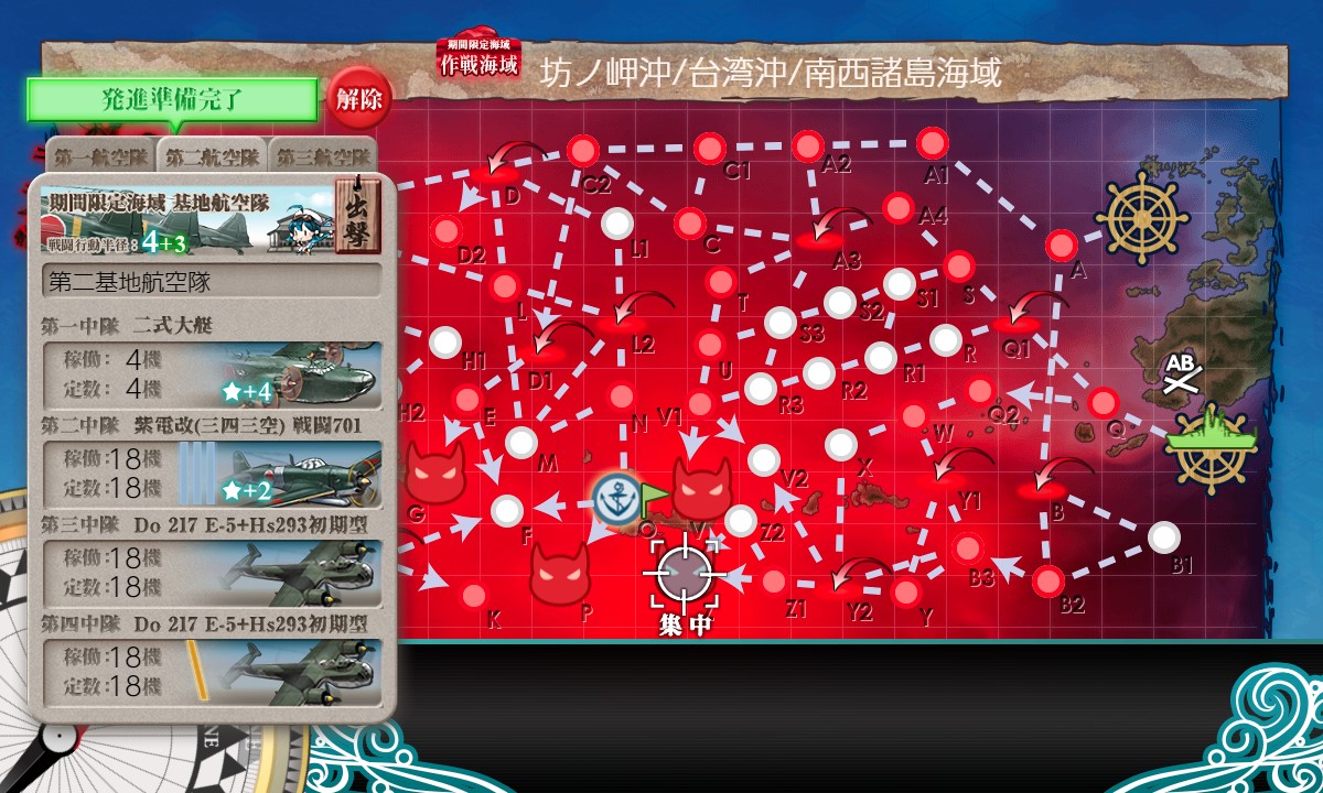 E5ーA2マス(距離5)に基地航空隊3部隊を集中。