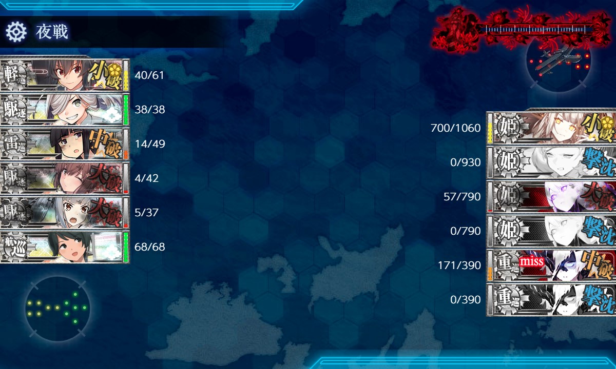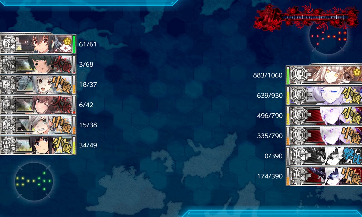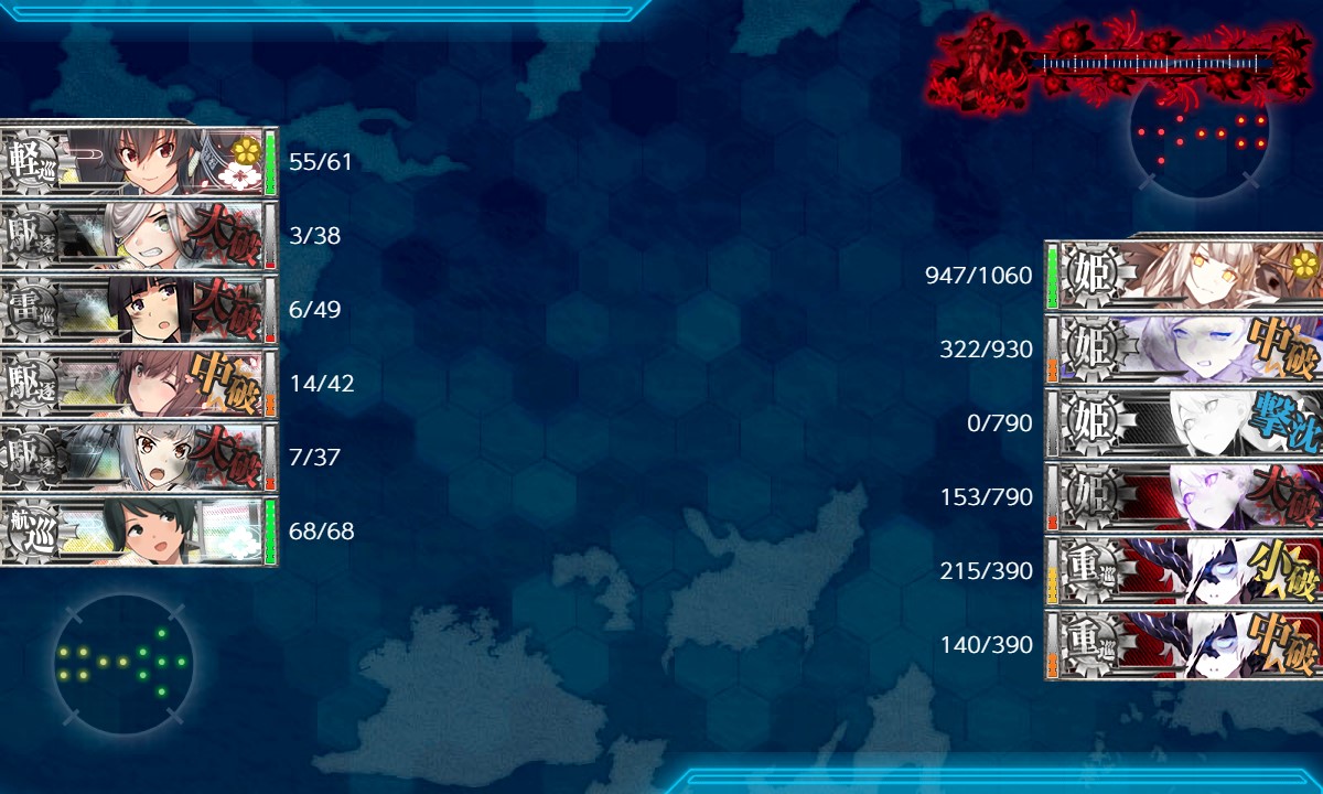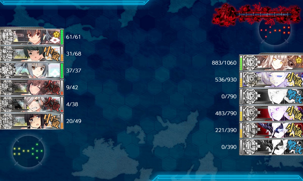 やまむさ砲がボスに当たって中破してたので撃破チャンスだったのに。