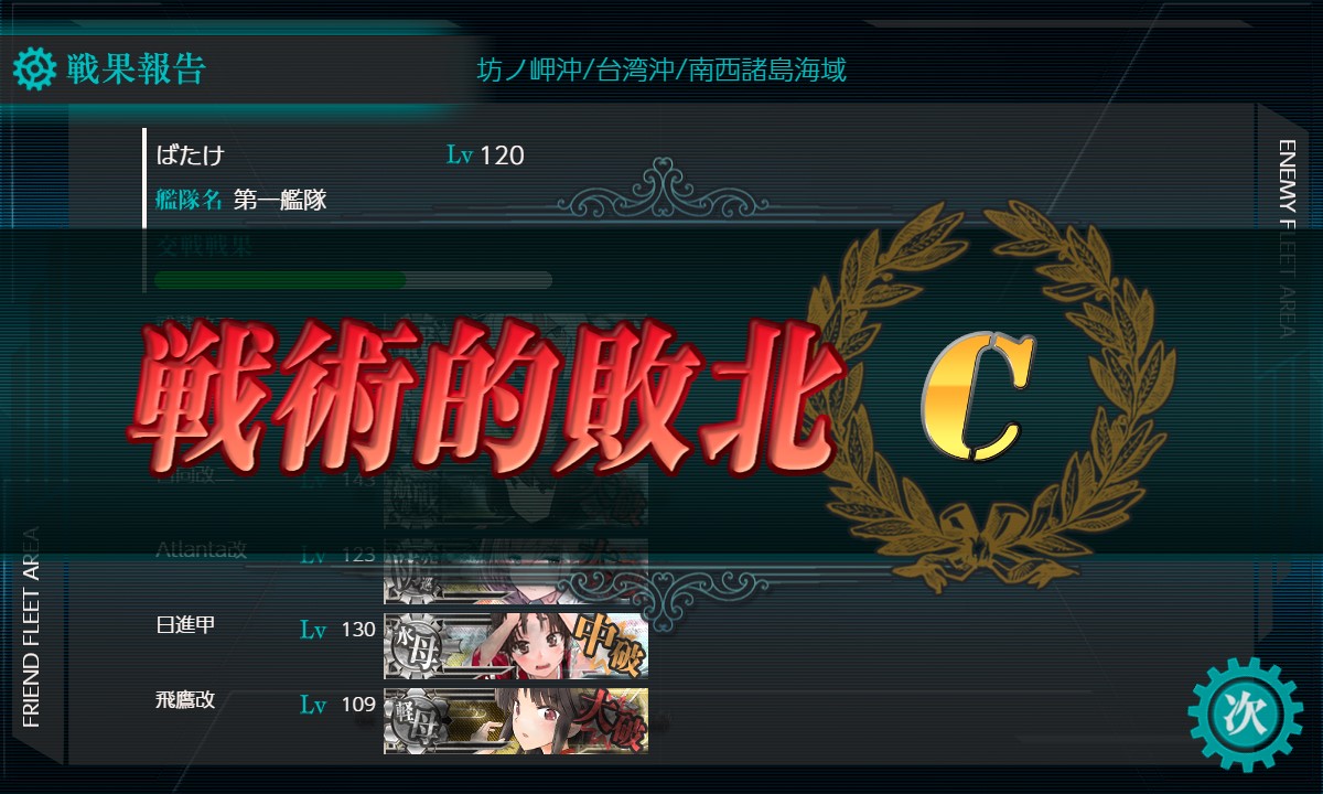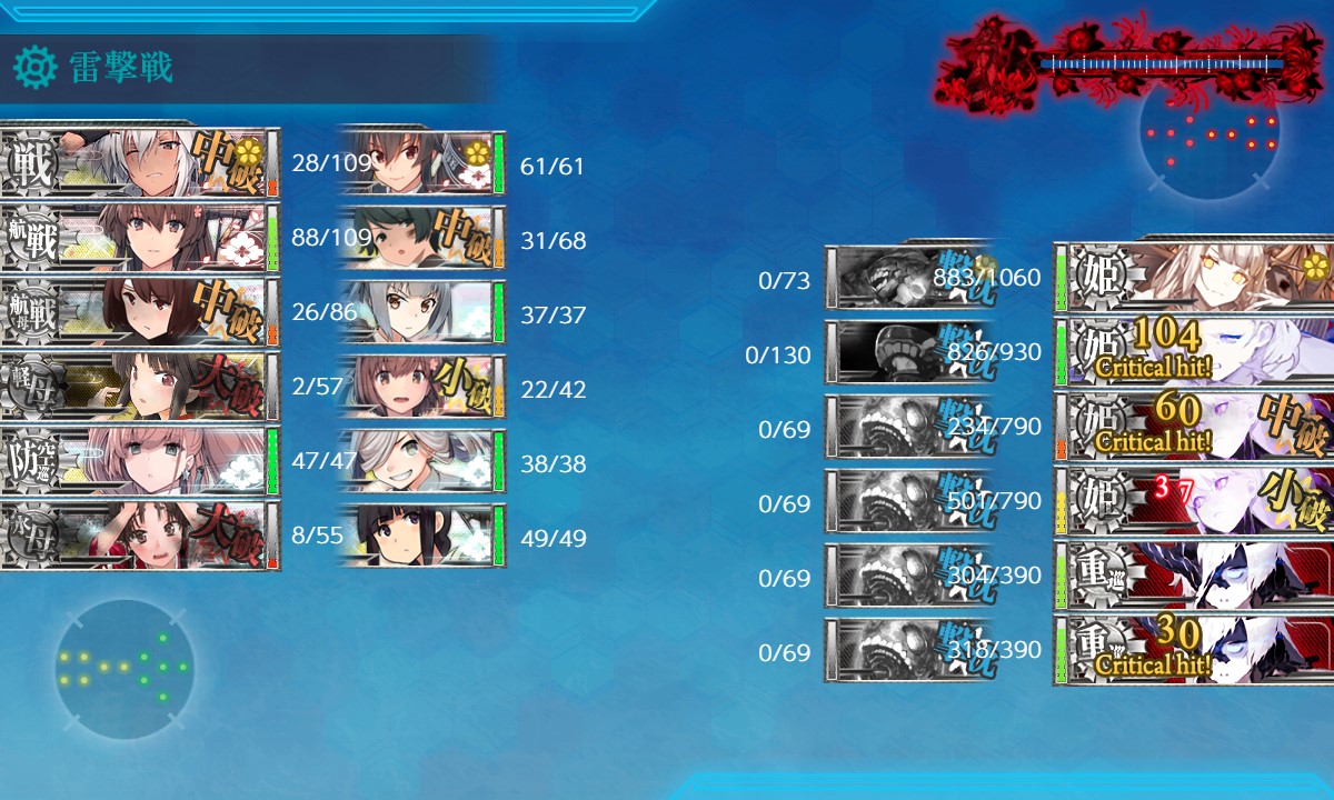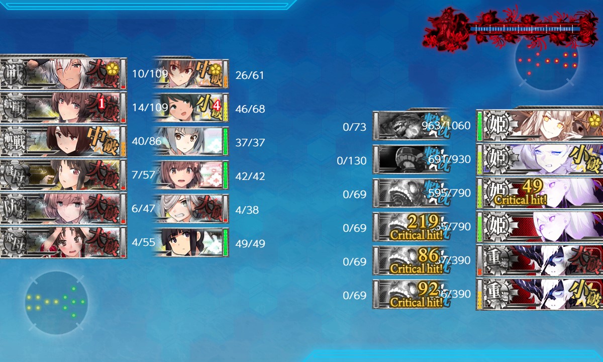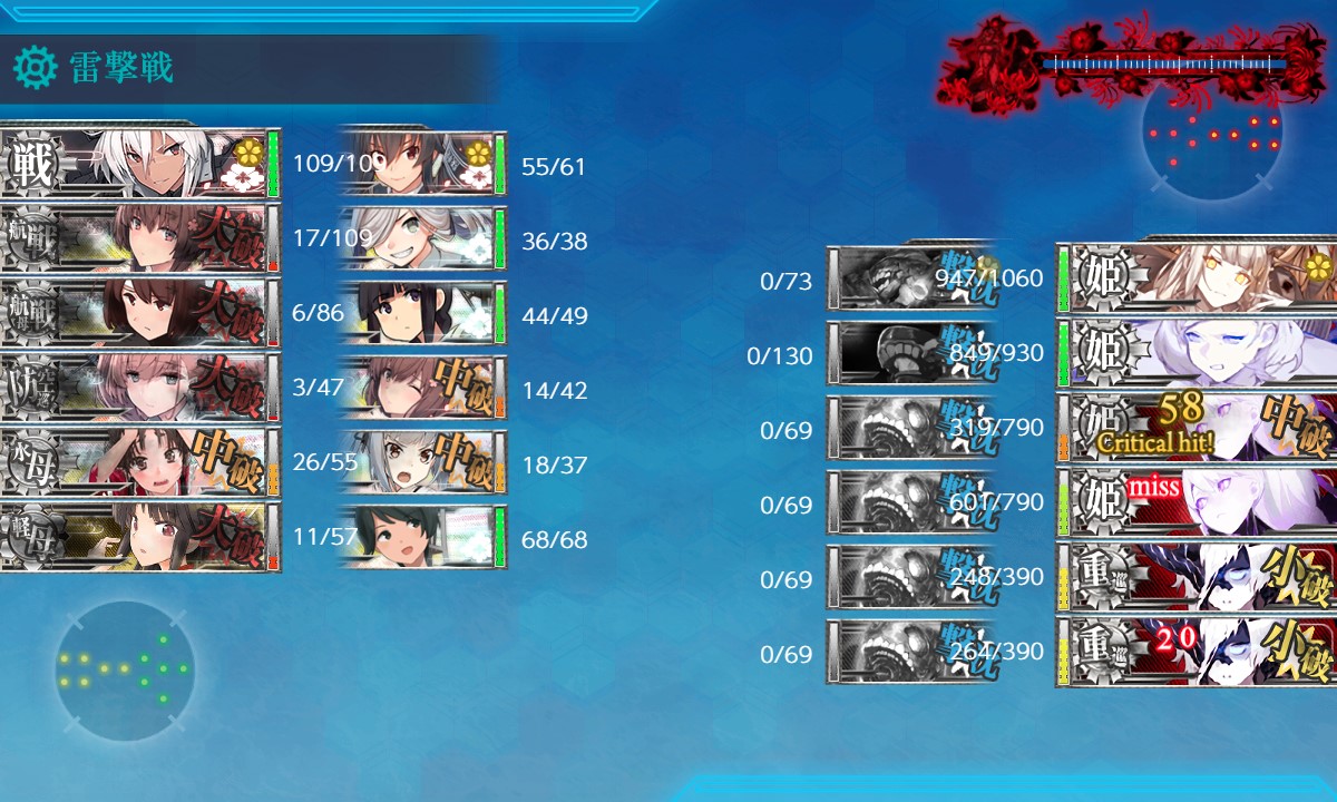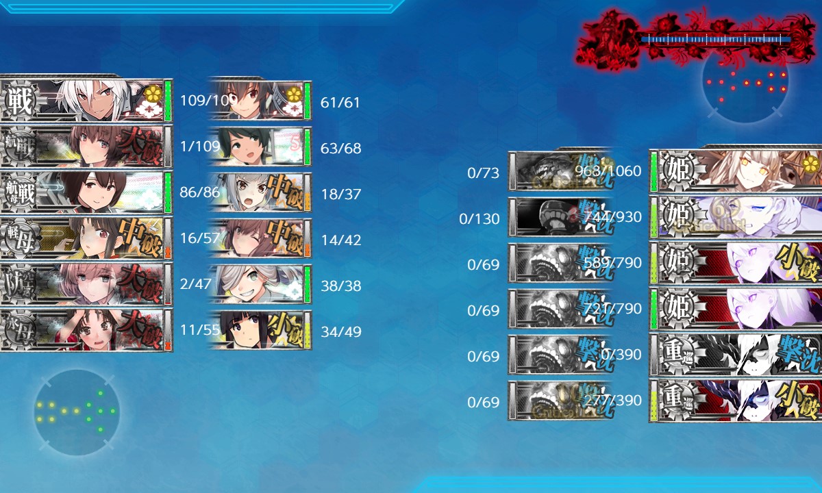 やまむさ砲がボスに当たって中破してたので撃破チャンスだったのに。