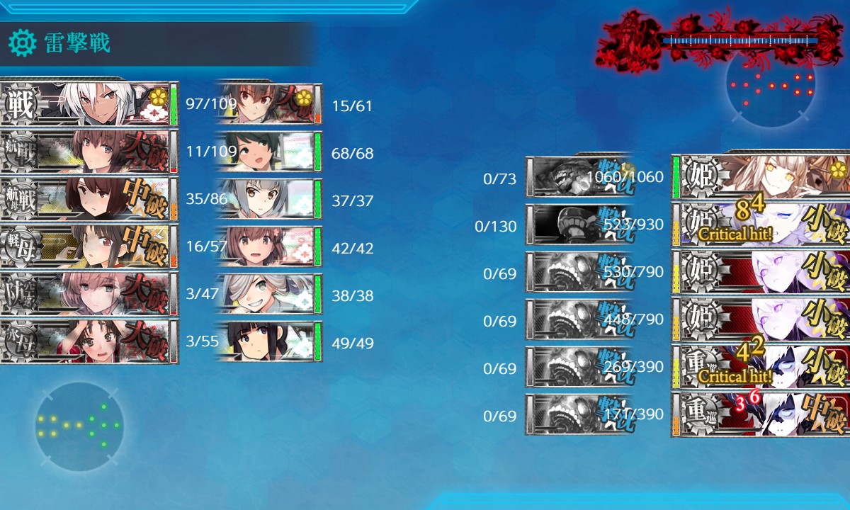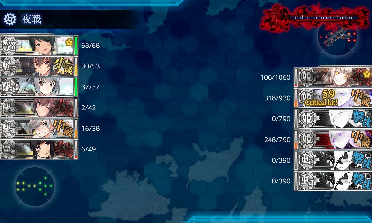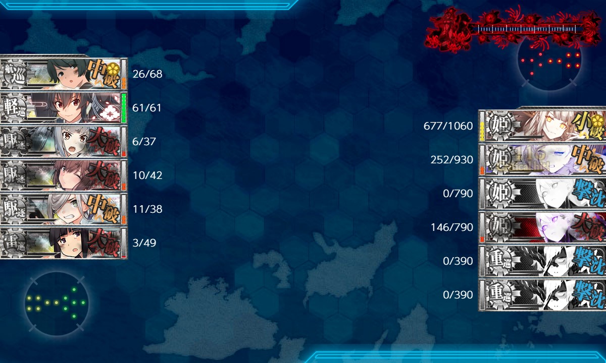 Wマスで中破した艦がその後の道中戦で大破撤退の要因になっています。