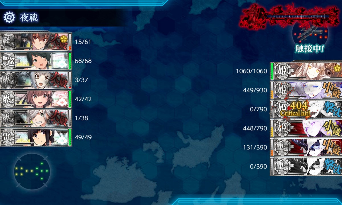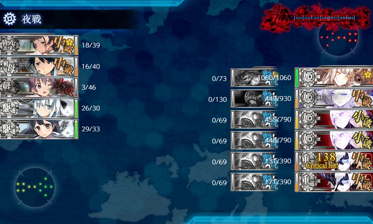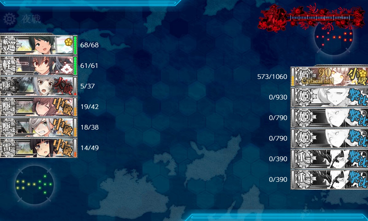 夜戦で誰もボスを狙わず。