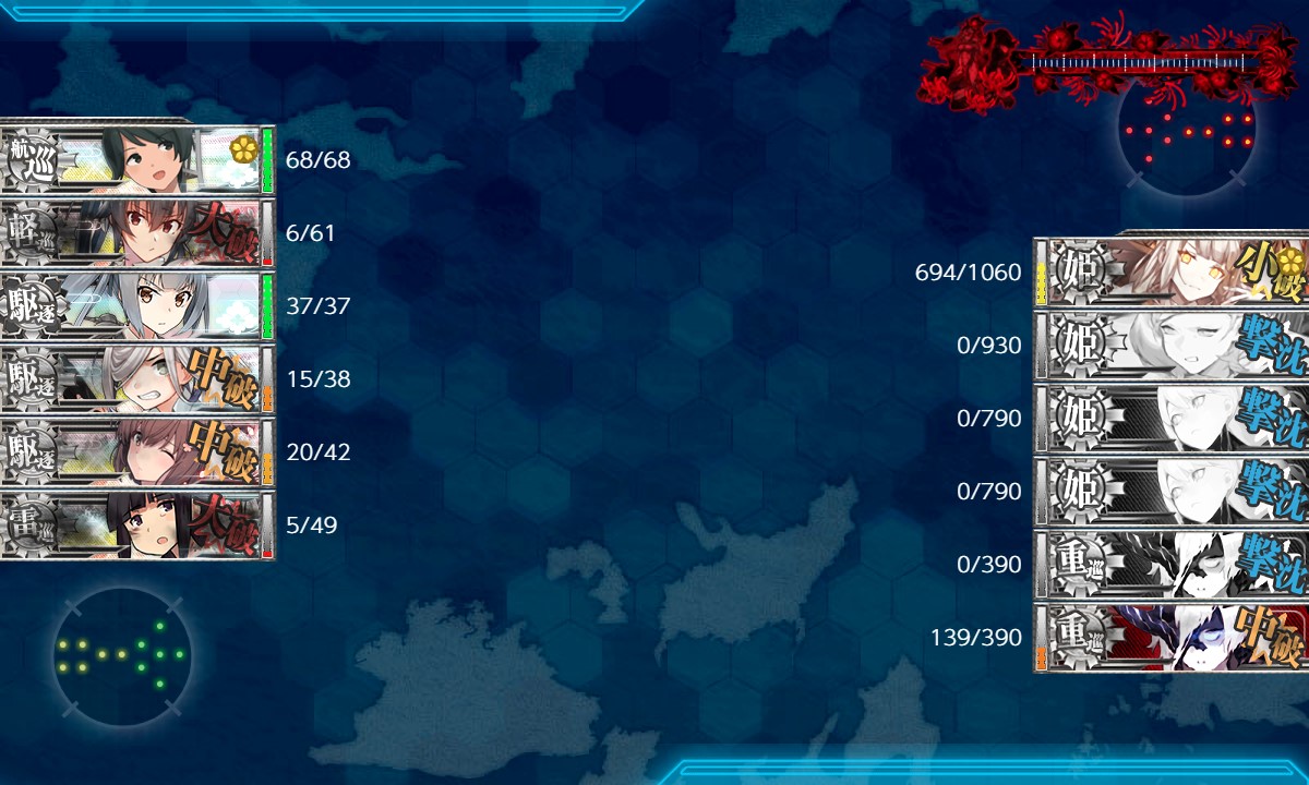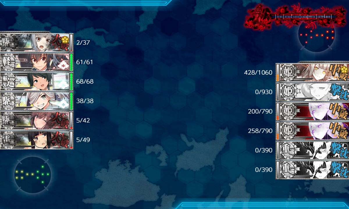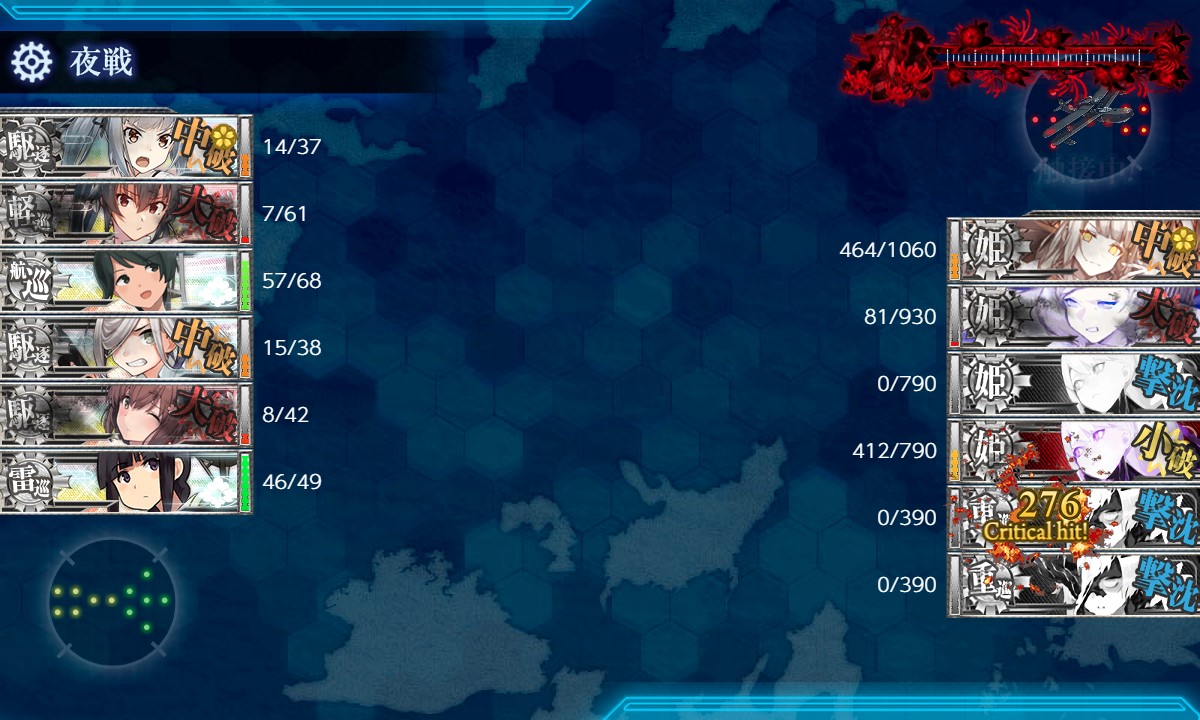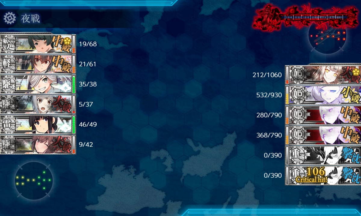 夜戦でカットインはいっぱい出ましたが、誰もボスを狙わず。