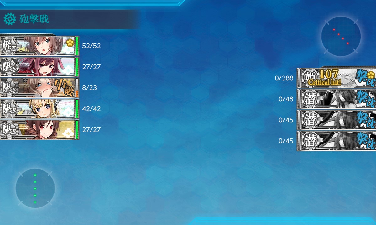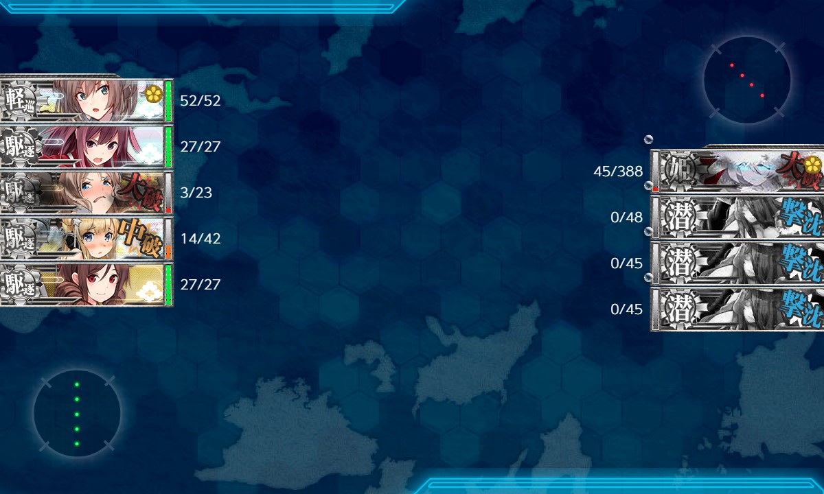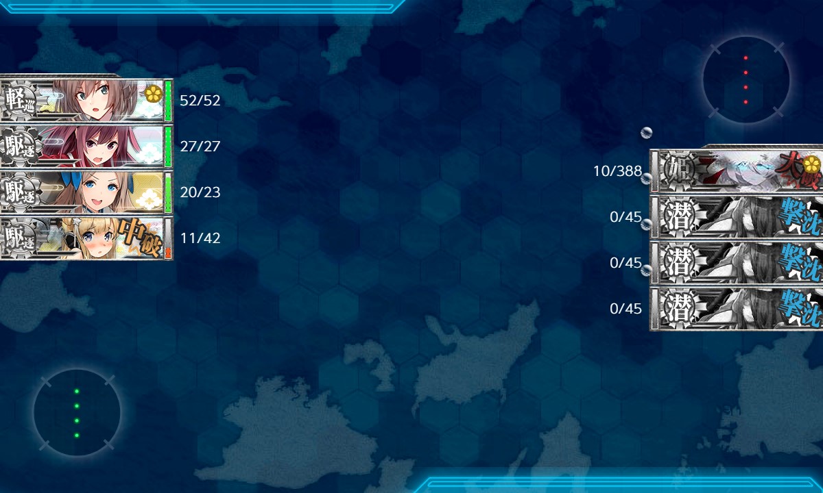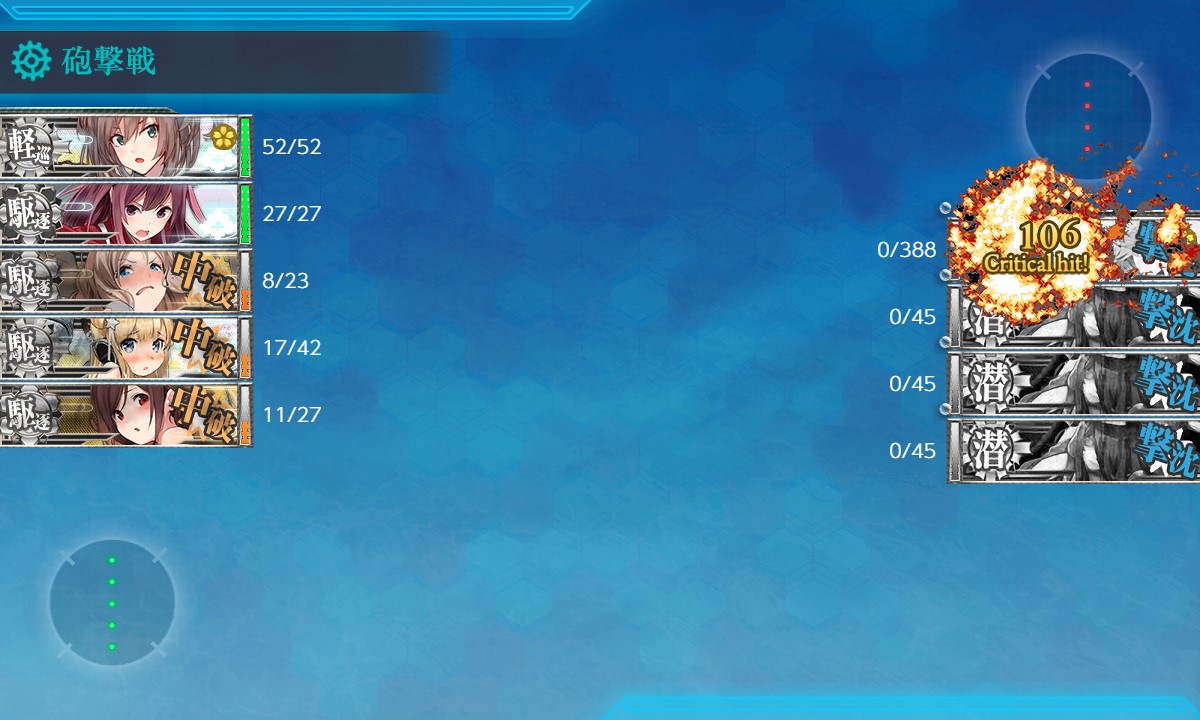 ソナー、爆雷、投射装置の「三種積み」してるとボスに3桁ダメージ入ってくれるのですが、たまに攻撃をMissしてたのが痛かった。