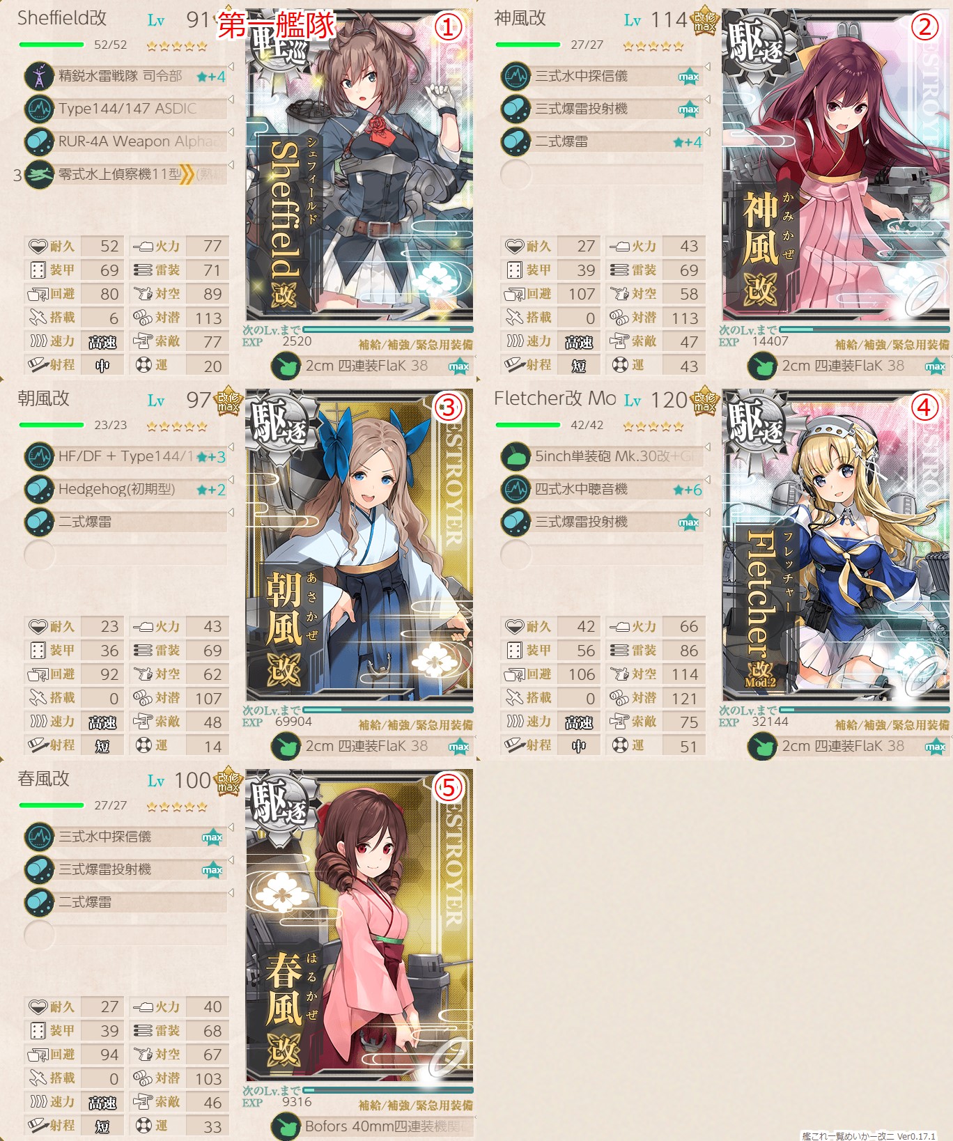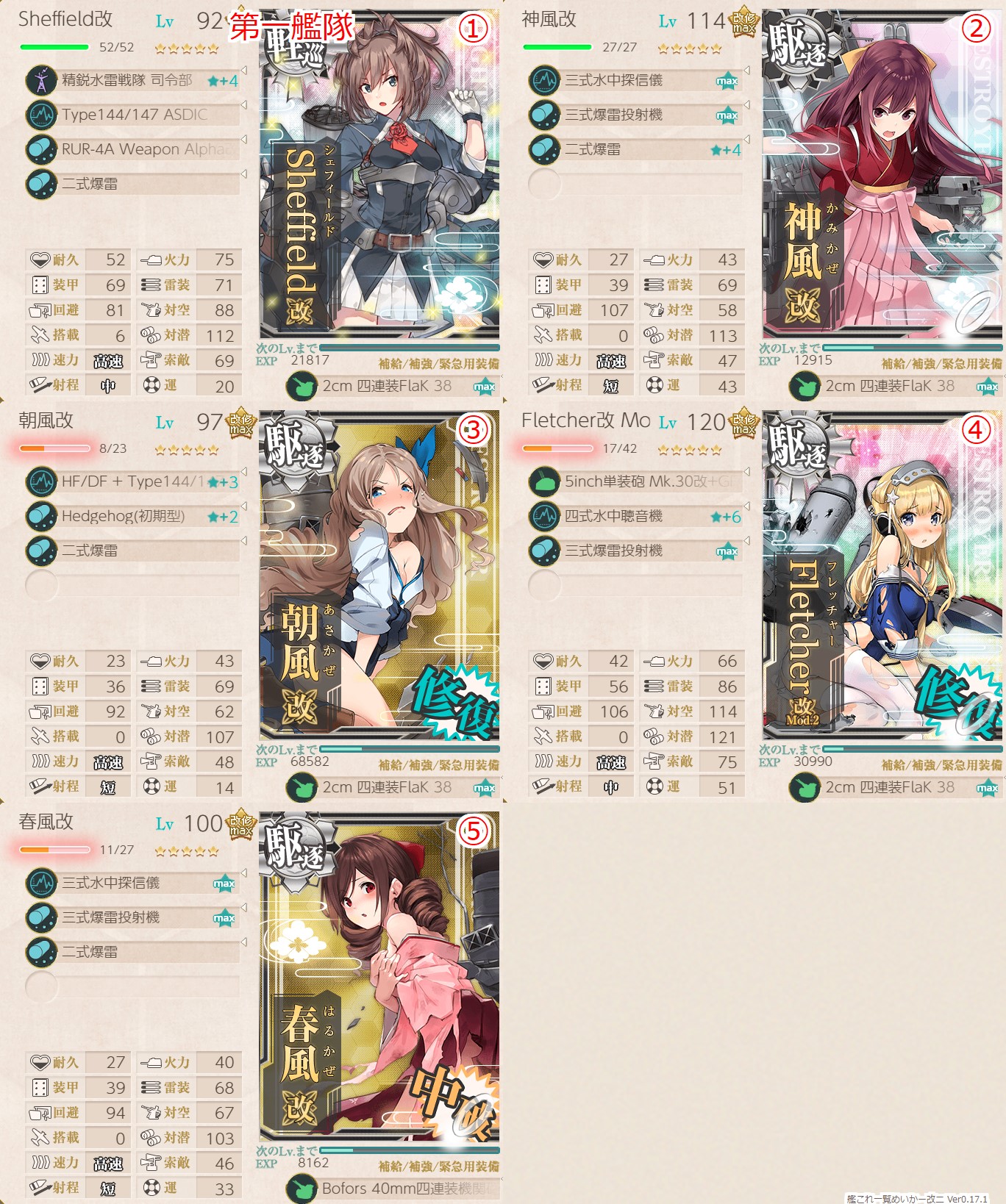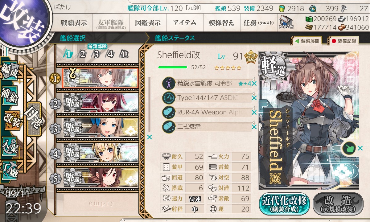 この編成と装備でもう一回S勝を目指します。