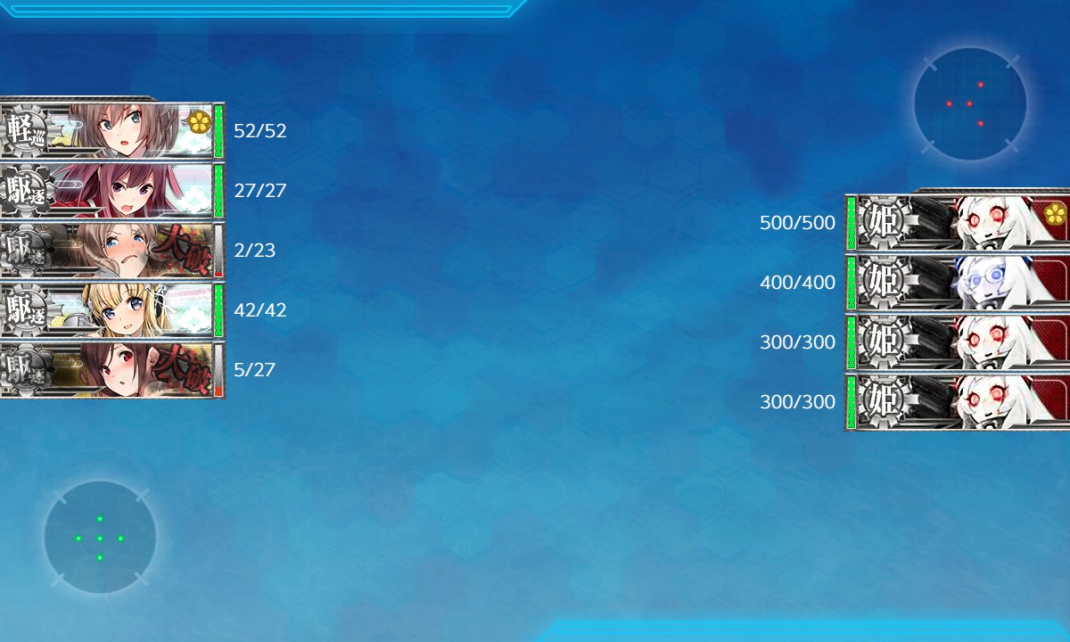 既にお札付きの艦だけで済ませられないかと4隻で出撃しましたが、あと一撃足りませんでした。