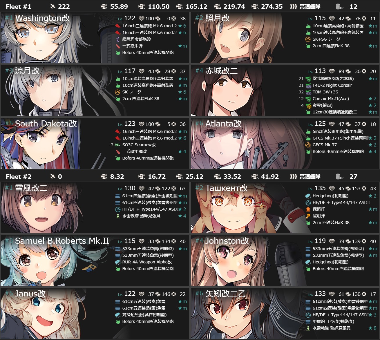 海防艦4隻を1隻づつ改修に使い、対潜+3、運+1。