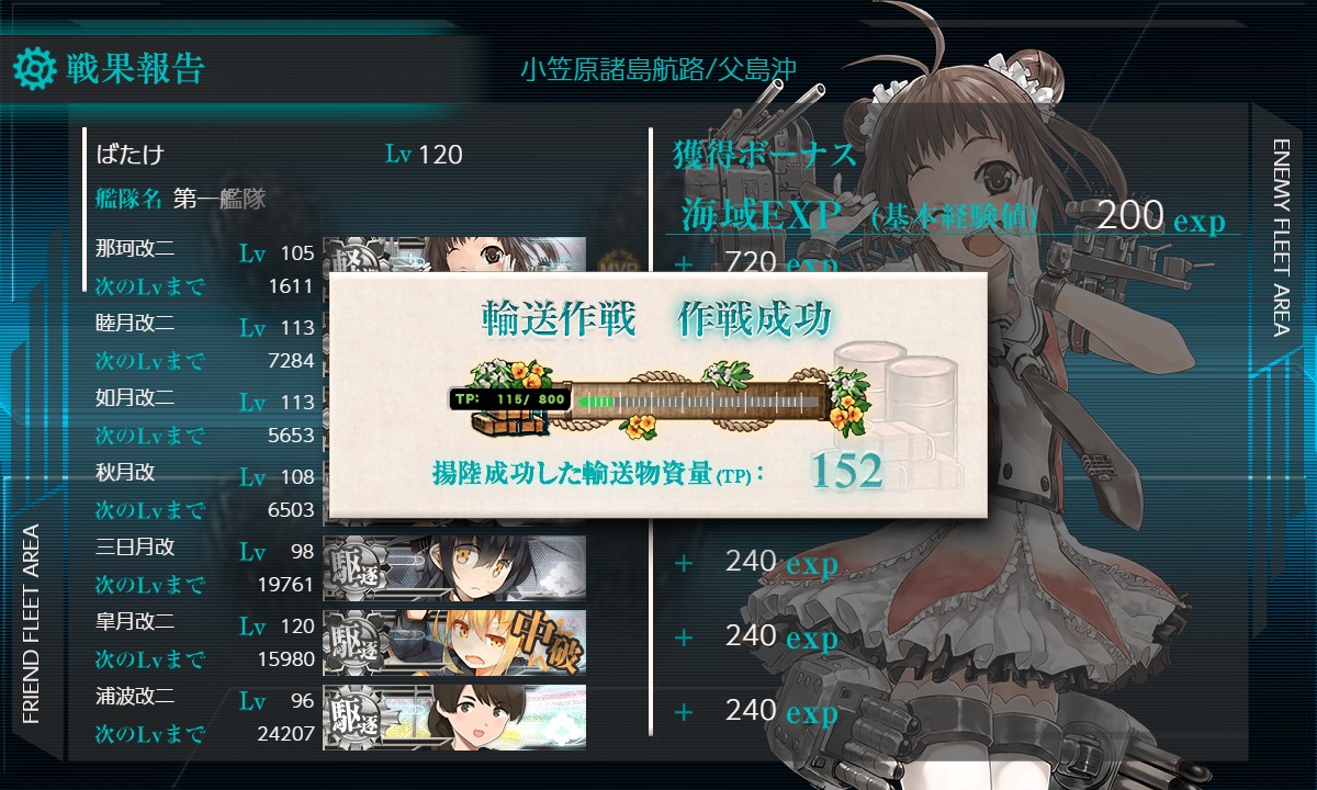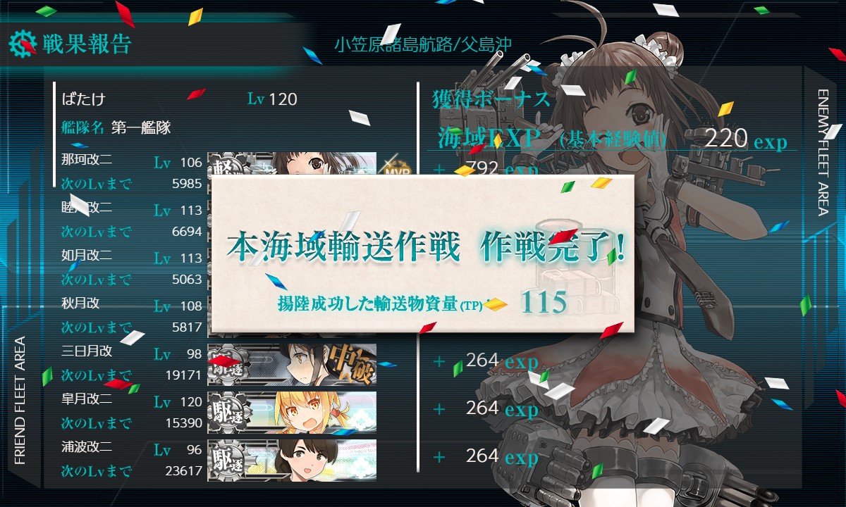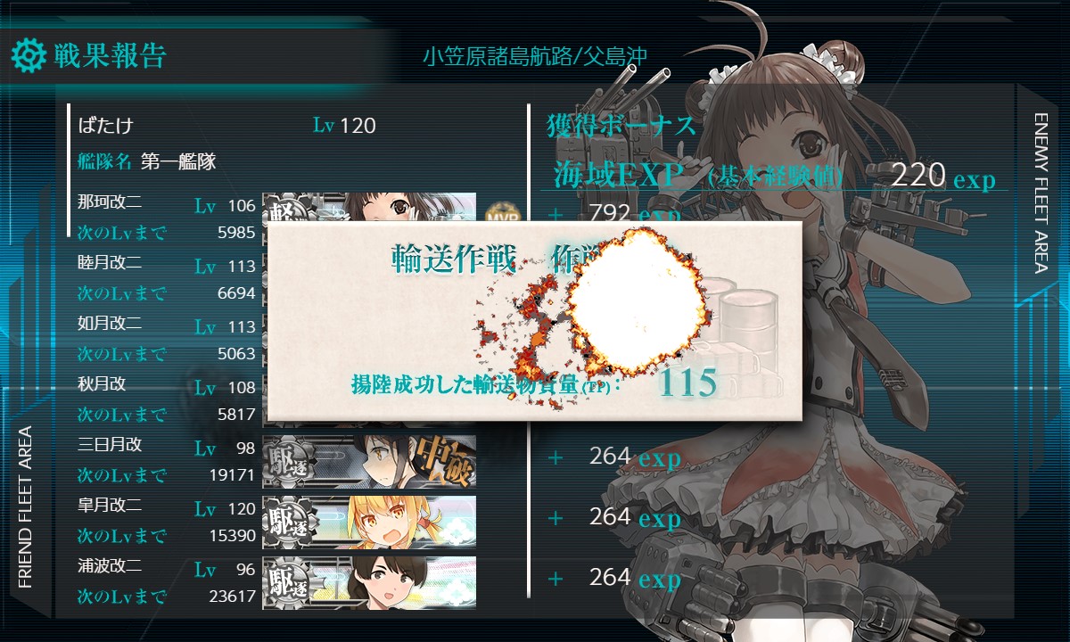 マップが変化して母港に帰投したらチャイムが鳴りました
