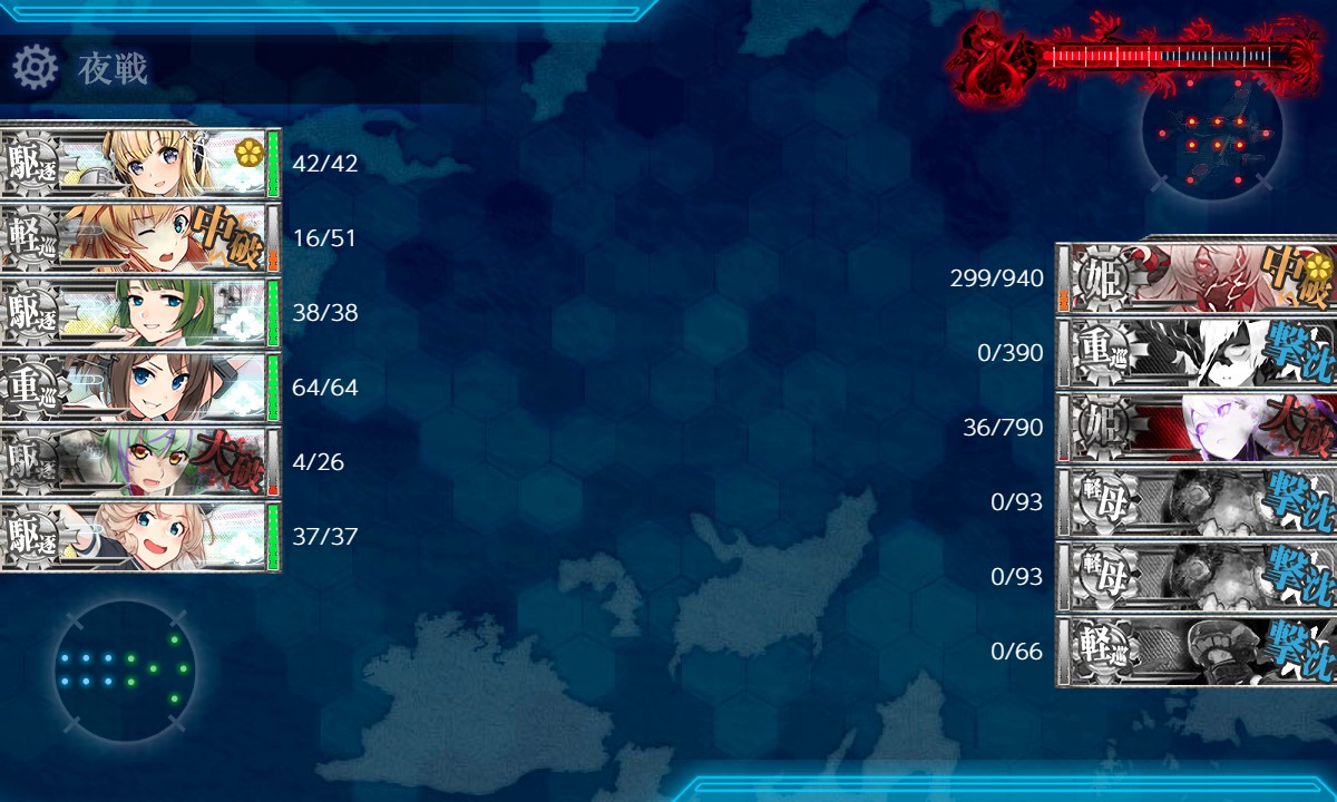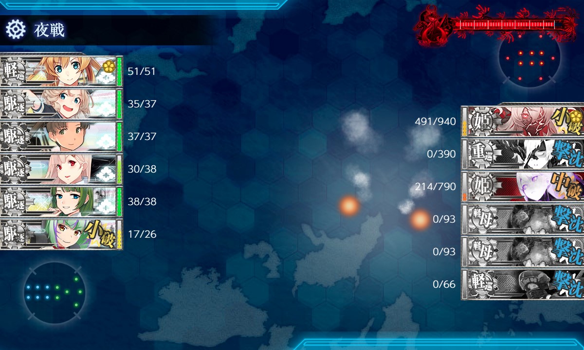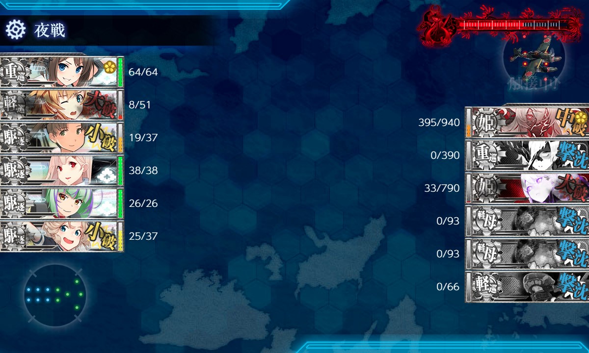 Xマス(夜戦)は警戒陣と相性が悪く支援で敵が倒せず効果が薄い