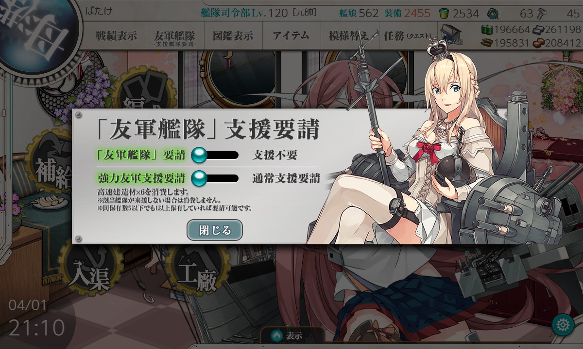 高速建造材は1個も消費しなかったので「強力友軍」ではなかった模様…