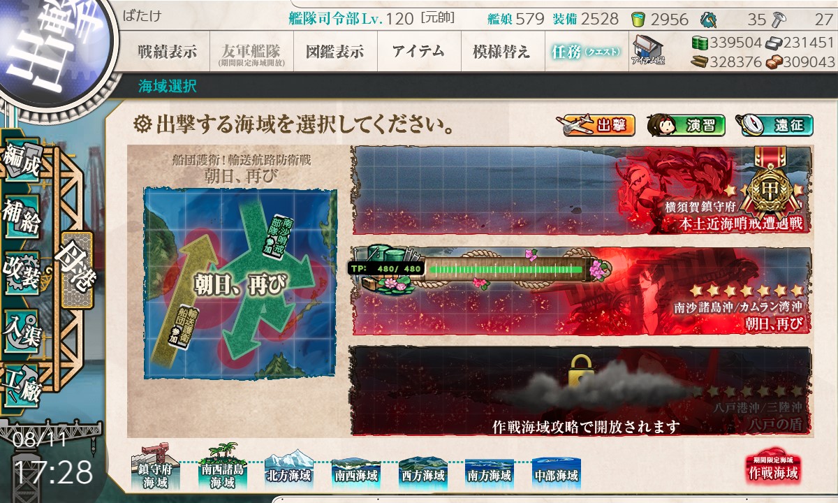 マップが変化し、母港に帰投したらチャイムが鳴りました