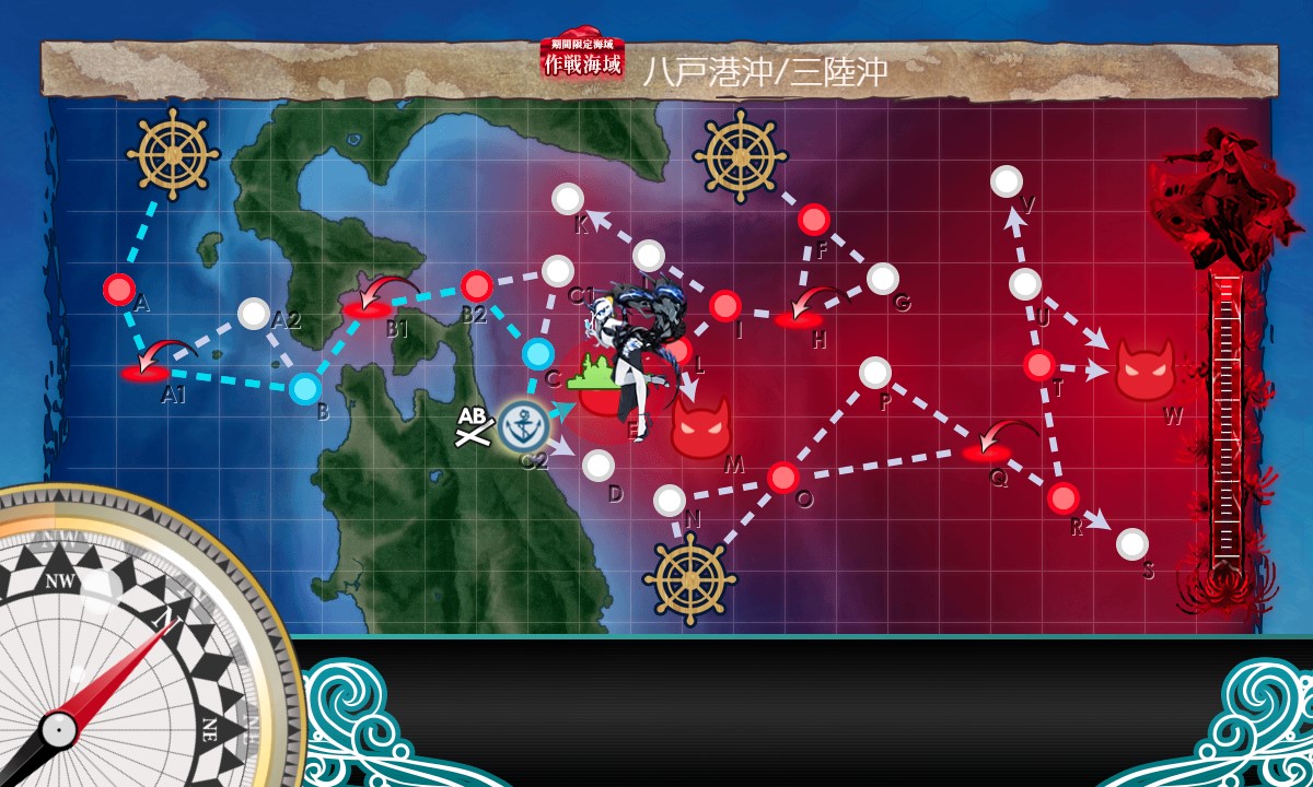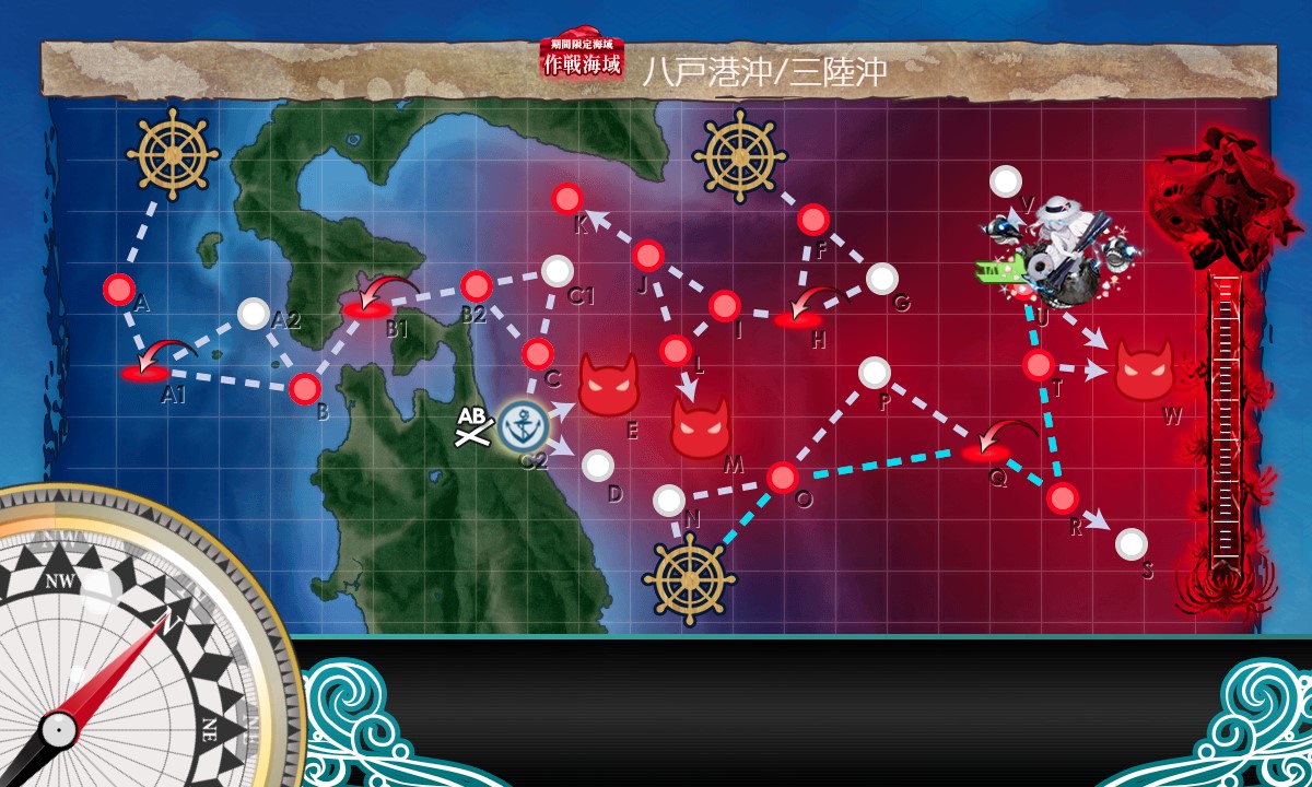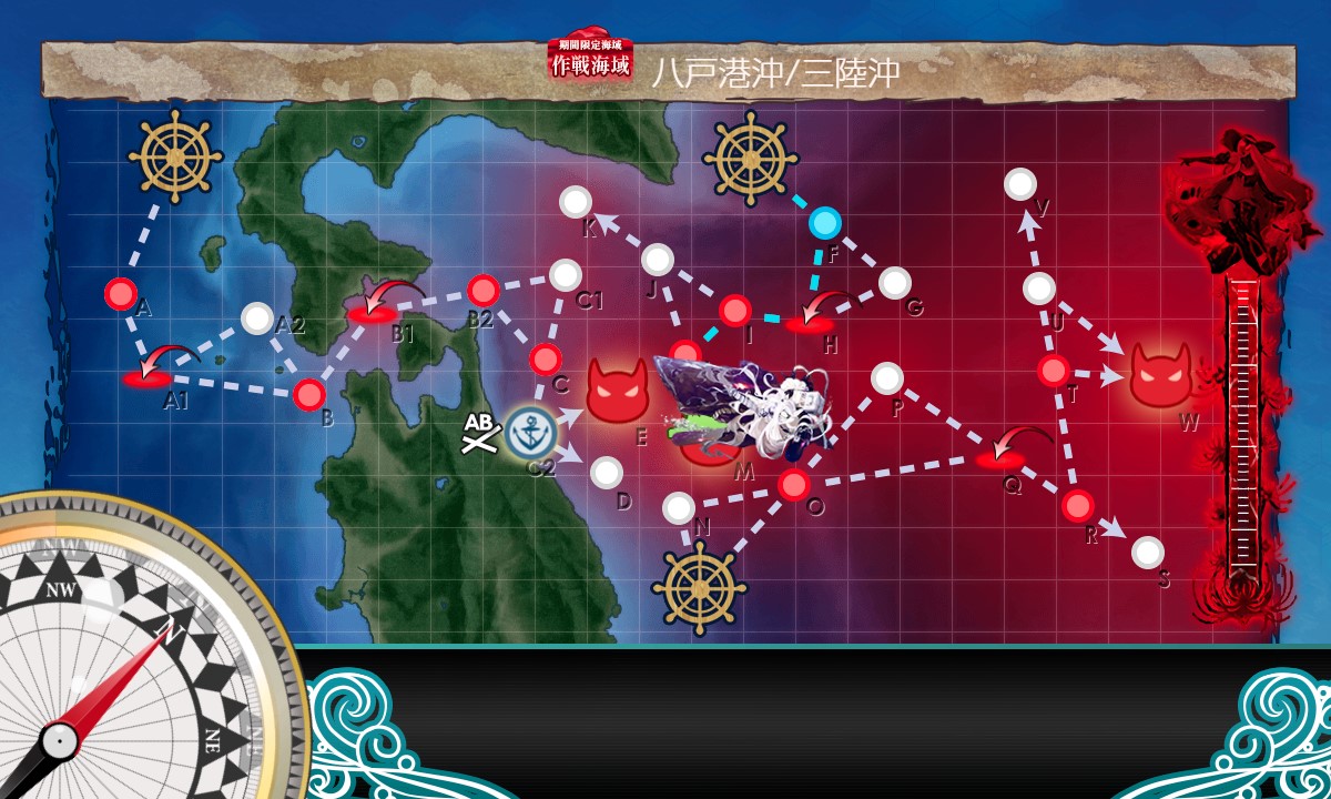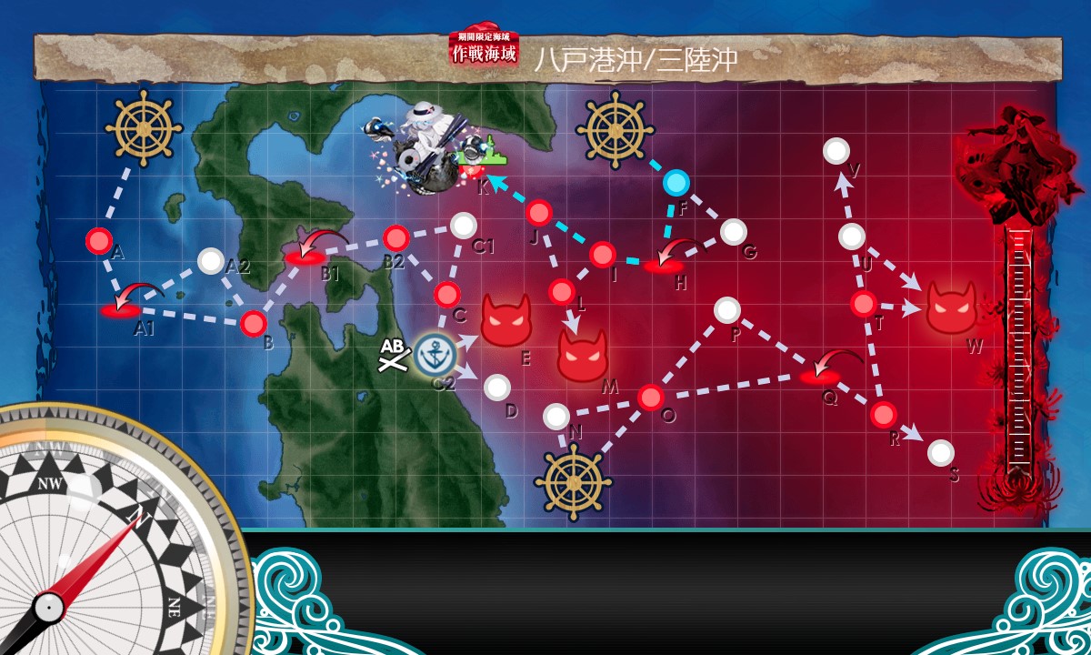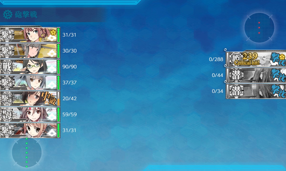第二スタート→F:潜水→H:空襲→I:水上→J:潜水→K:潜水、と進行