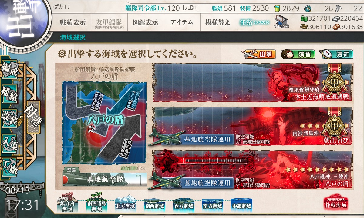 ※第三艦隊に6隻編成だと出撃できませんでした