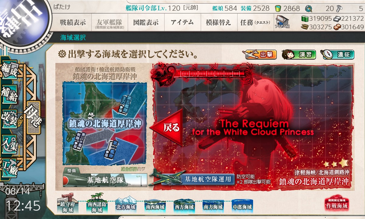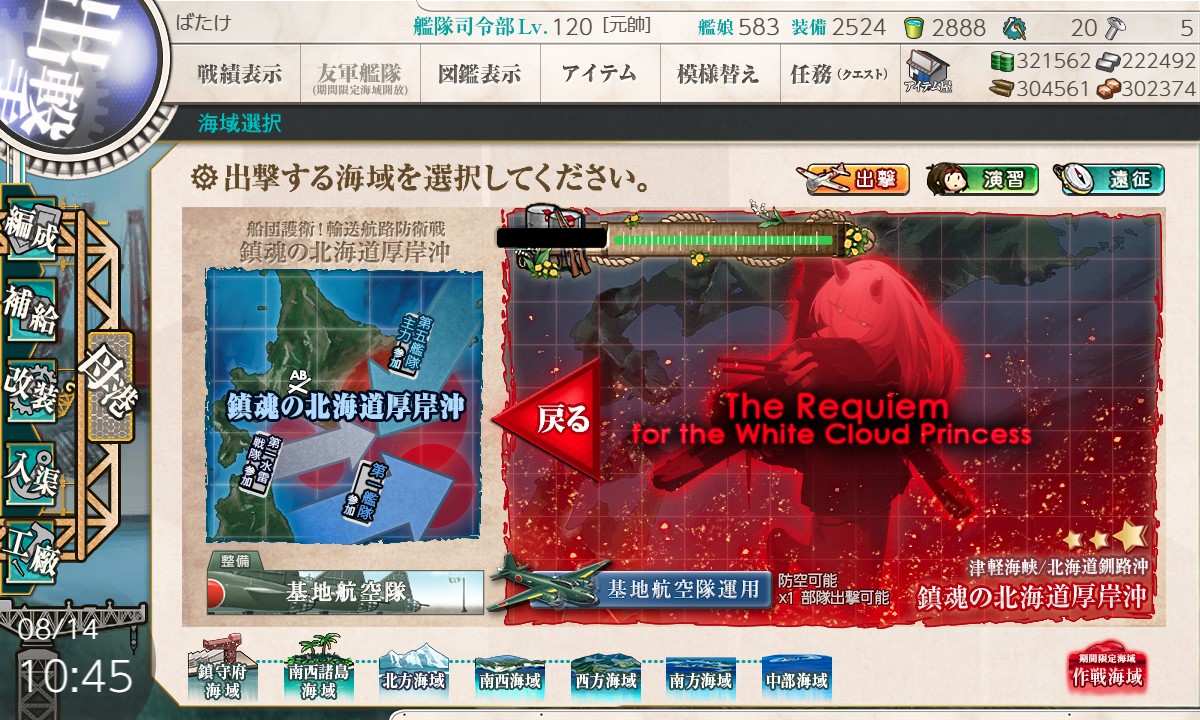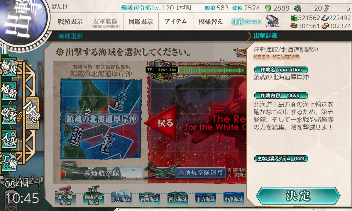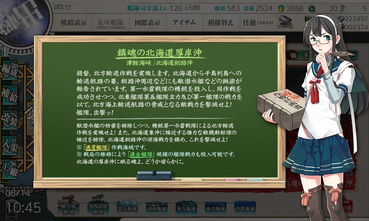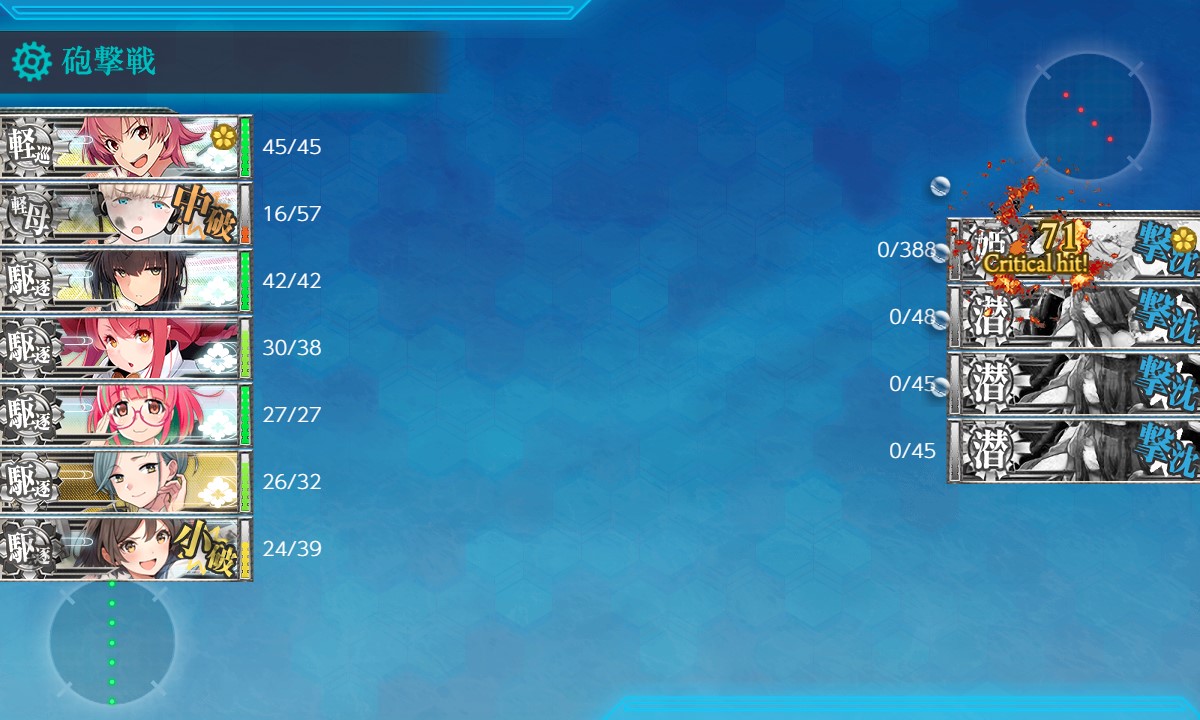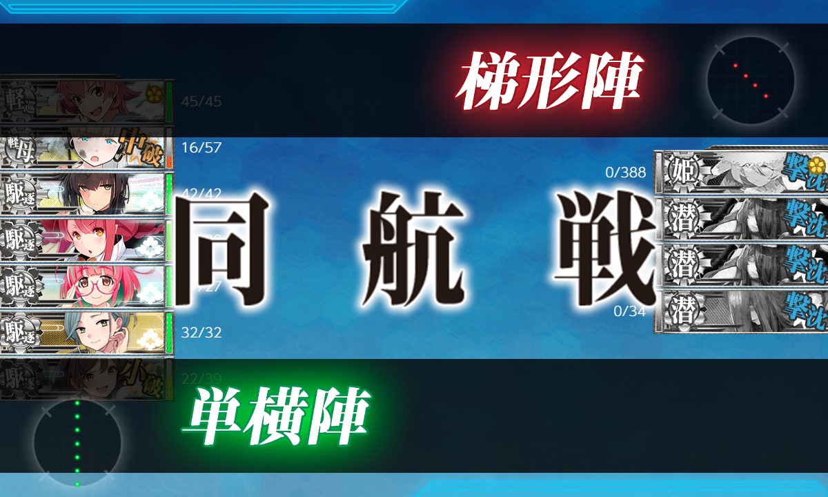 スタート→A:潜水(単横陣)→A1:空襲(輪形陣)→B:水上(警戒陣)→C1:空襲(輪形陣)→C2:水上(警戒陣)→D:揚陸ポイントと進行