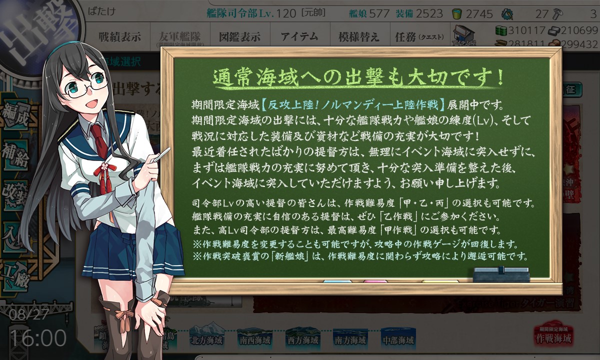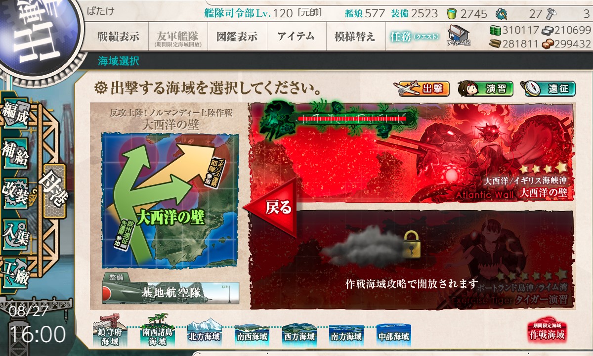 戦闘後にマップが変化し、母港に帰投したらチャイムが鳴りました