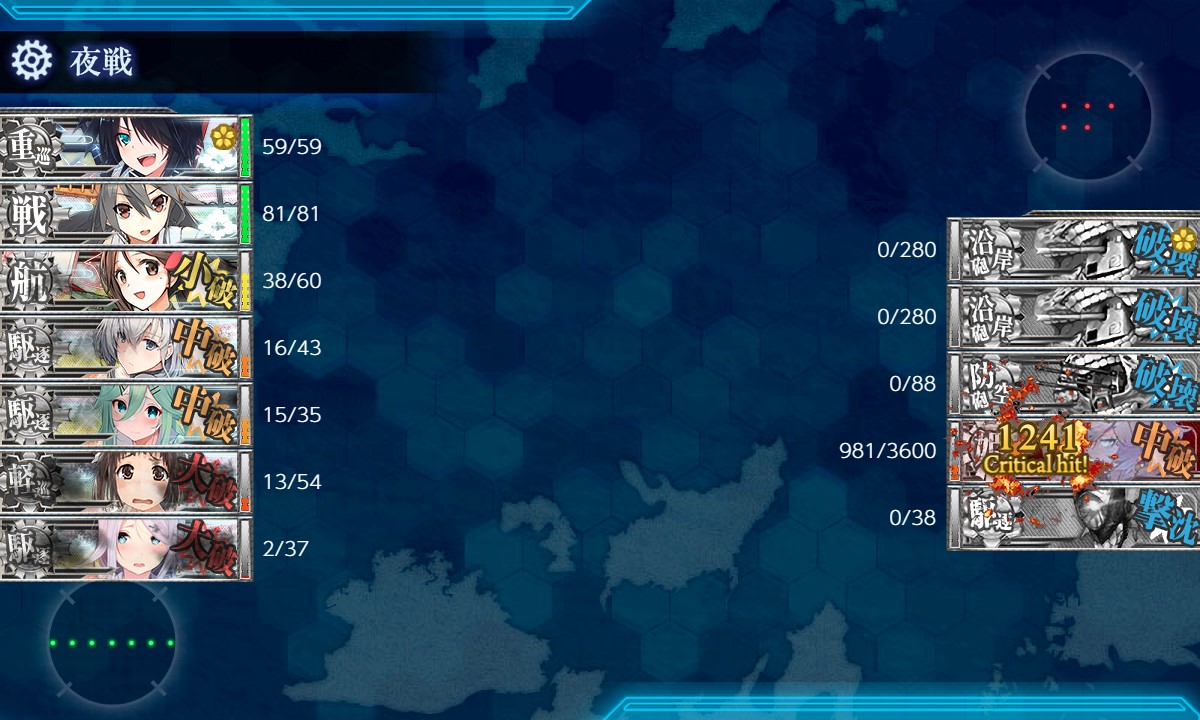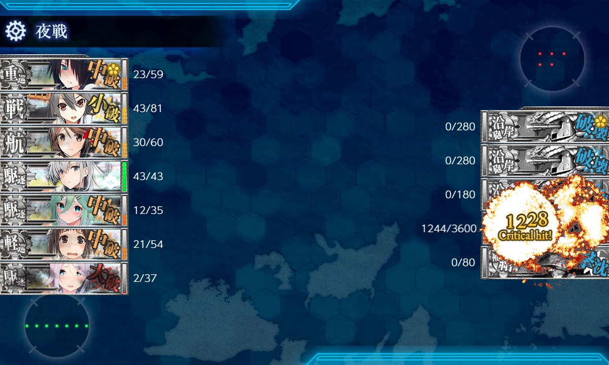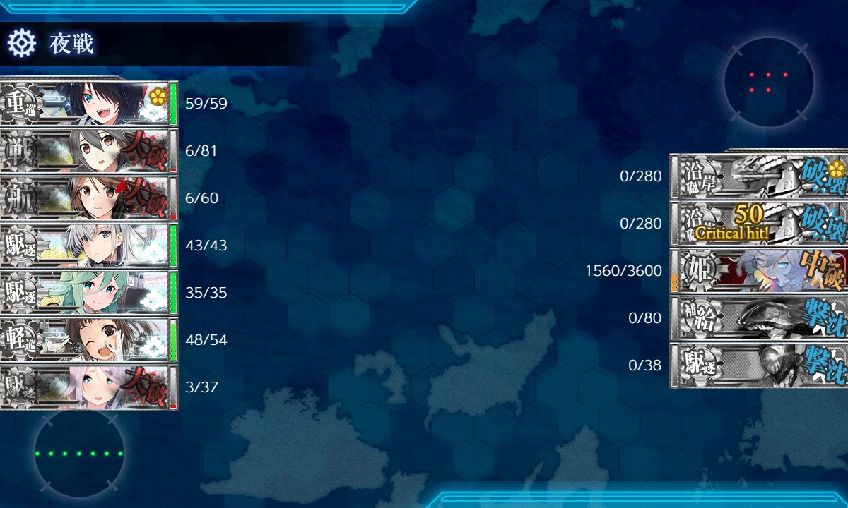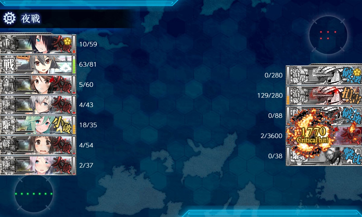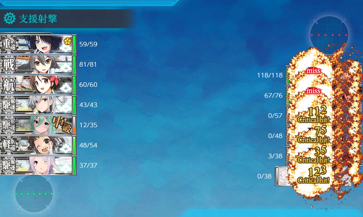 肝心のEマスに支援来援せず、中破3隻で突破