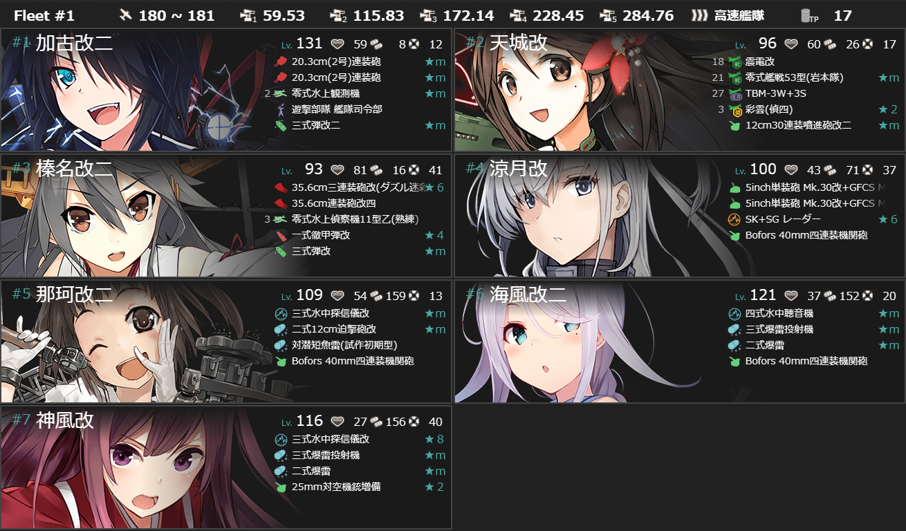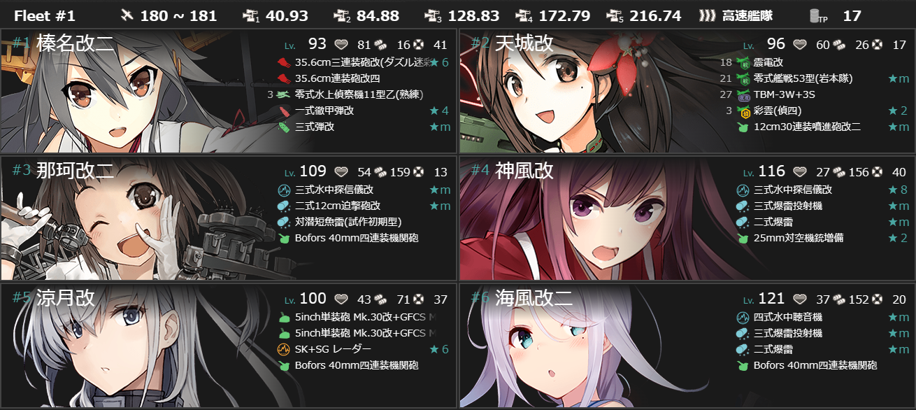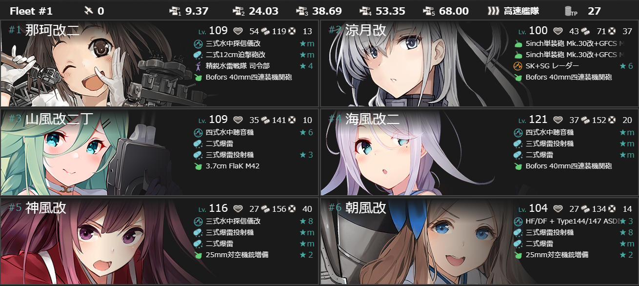 第一艦隊に軽巡1駆逐5を編成、対潜装備満載