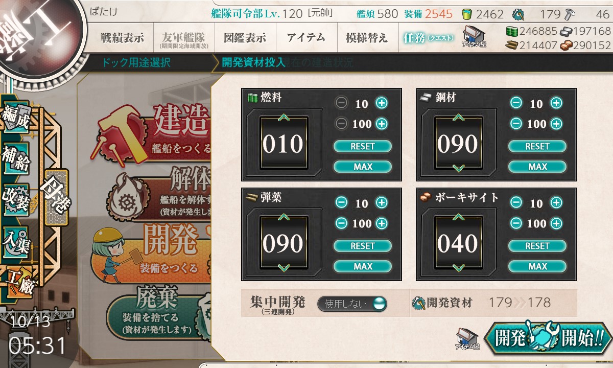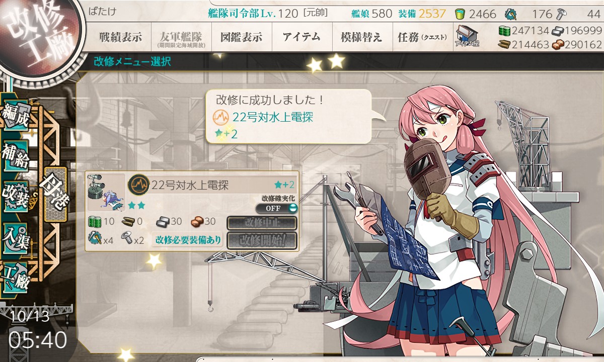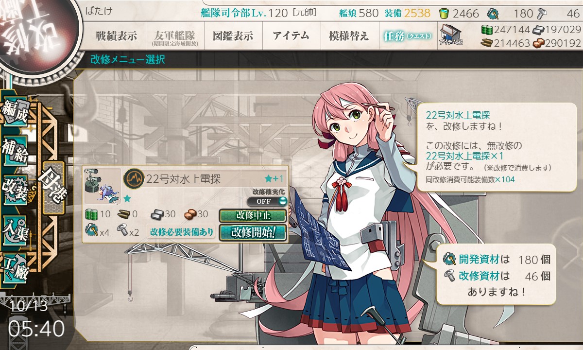 改修材料に「22号対水上電探改四」が必要なのでデイリー開発は当分コレに