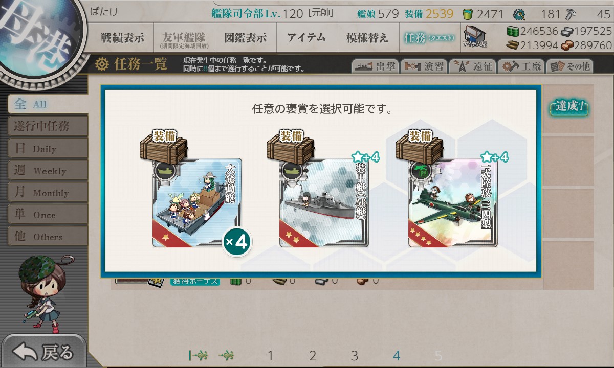 小口径主砲、中口径主砲、偵察機、25mm連装機銃は
